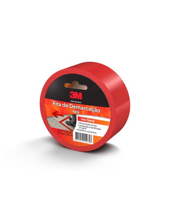 Caracteristicas:A Fita de Demarcação de Solo de Uso Geral 469 é a maneira mais prática e econômica de substituir o uso de tintas em aplicações de sinalização e demarcação em geral. Oferece grande visibilidade, boa resistência ao desgaste e fácil aplicação e remoção.- Resistente ao fluxo intenso de pessoas- Prática e flexível- Forte adesão e resistência- Boa resistência química- Boa resistência à abrasão- Resistência a temperaturas de até 76ºC- Vulnerável à ação de cetonas, hidrocarbonetos clorados e ésteres- Composição: Fita constituída de um dorso de PVC plastificado colorido coberto com adesivo a base de resina e borrachaAplicações sugeridas- Ideal para demarcar vagas, garagens, estacionamentos e organizar filas- Indicada para sinalizar portas de vidro e equipamentos de combate a incêndio- Também pode ser usada para marcação temporária de peças ou máquinas e proteção de peças, equipamentos ou produtos contra abrasãoEspecificações técnicas:- Espessura: 0,125mm- Adesão ao aço: 450 gf/25mm- Resistência à tração: 5,25 kgf/25mm- Alongamento: 125%* As especificações podem ser alteradas sem aviso prévio ** Imagem meramente ilustrativa