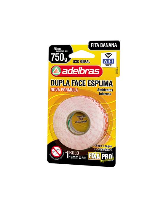 Caracteristicas:- A fita dupla face espuma é tipo banana, indicada para montagem de união de placas, plásticos, sinais ou emblemas. - Especial para pendurar objetos leves, bricolagem, artesanato. - Ideal para fixação de canaletas do sistema X. Esse modelo de fita dupla face espuma dispensa o uso de pregos e parafusos e evita furos na parede. - Uso em ambientes internos que não sofram variações de temperatura nem contato com umidade.- Cada 25cm suporta até 1kg* As especificações podem ser alteradas sem aviso prévio ** Imagem meramente ilustrativa.