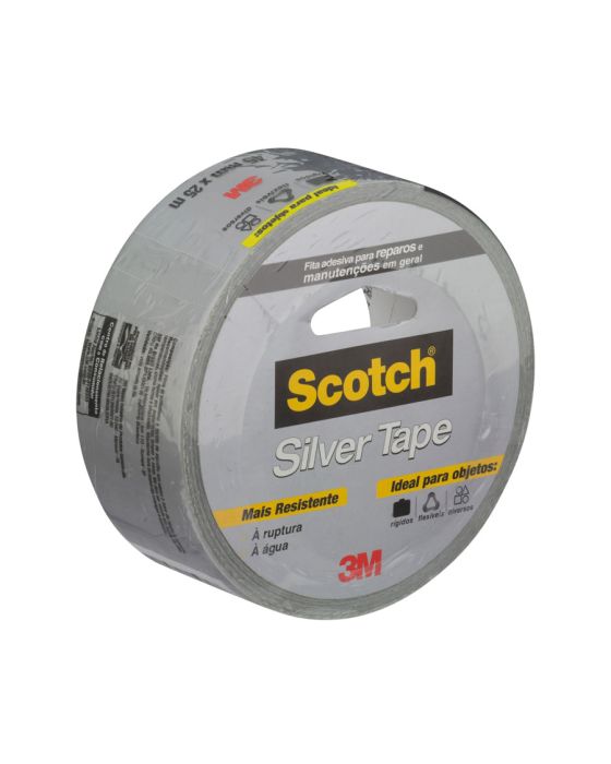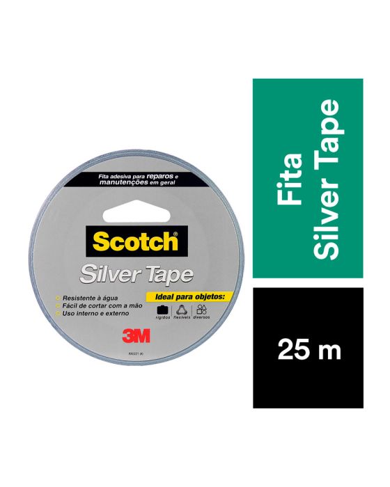A Fita Silver Tape 3M Scotch™ é ideal para reparos provisórios, fixações diversas e manutenções de forma rápida, Possui alta adesão e é resistente à água. Resistente à ruptura, esta fita é adequada para reparos e manutenção em geral. Ideal para objetos tanto rígidos quanto flexíveis.