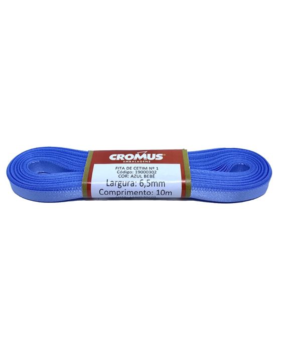 Fita Cetim Liso Azul Bebe 6,5mmx10m N1 Cromus