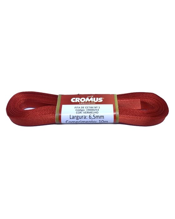 Fita Cetim Liso Vermelho 6,5mmx10m N1 Cromus