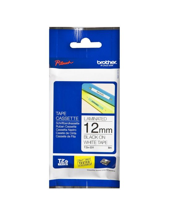 Características:As Fitas Brother TZES231 são ideais para aplicação em paredes texturizadas ou com grande acúmulo de poeira ou oleosidade e devido a sua tecnologia única de laminação que permite que seja exposta a intempéries devido a sua alta durabilidade e resistência, sendo uma fita que pode ter sua aplicação para uso doméstico ou professional.A linha TZE possui etiquetas laminadas, resistentes a temperaturas extremas, resistentes à água, abrasão e a produtos químicos, além de não desbotarem e possuírem uma película de proteção fácil de destacar.Detalhes:- Marca: Brother;- Modelo: TZES231;- Linha: Fitas Rotuladoras;- Família: Linha TZE;- Cor da fita: Branco;- Cor da escrita: Preto;- Tamanho: 12mm;- Contém: 1 unidade do produto;- Fita laminada com super cola;- Não desbota;- Possui alta aderência;- Durável;- Atóxica.Indicada para:- A TZES231 é ideal para ser aplicada em paredes texturizadas ou com grande chance de acúmulo de poeira ou oleosidade.Compatibilidade:- Compatível com os modelos: PTH110, PTD210, PTP300BT, PTH110BK, PTE300VP, PTE110, PTE500VP, PTE550WVP, PTP700, PTP750W, PTP900W e PTP950NW.Resistência:- Temperaturas extremas (-80°C até +150°C);- A água, sol, umidade, substâncias químicas, abrasão, poeira, áreas sujeitas ao frio.Tipo de fita:- Laminada, com super cola e ecológica.Medidas:- Largura: 12mm (1,2cm);- Comprimento: 8m.* As especificações podem ser alteradas sem aviso prévio ** Imagem meramente ilustrativa.