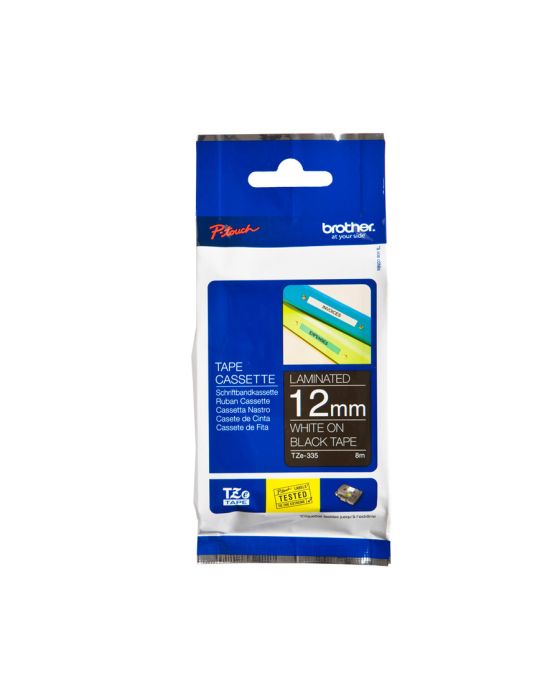 Características:As fitas Brother TZE335 são indicadas para superfícies lisas e planas, possuem tecnologia única de laminação, que possibilita a criação de etiquetas duráveis e resistentes que podem se expostas a diferentes temperaturas permitindo que você crie etiquetas para diversos tipos de aplicação, seja para uso doméstico ou profissional!A linha TZE possui etiquetas laminadas, resistentes a temperaturas extremas, resistentes à água, abrasão e a produtos químicos, além de não desbotarem e possuírem uma película de proteção fácil de destacar.Detalhes:- Marca: Brother;- Modelo: TZE335;- Linha: Fita Rotuladora;- Família: Linha TZE Tape;- Cor da fita: Preta;- Cor da escrita: Branca;- Tamanho: 12mm;- Contém: 1 unidade do produto.;- Fita laminada;- Não desbota;- Possui alta aderência;- Atóxica.Indicada para:- A TZE335 é indicada para superfícies lisas e planas.Compatibilidade:- Compatível com os modelos de rotuladores: PTH110, PTD210, PTP300BT, PTH110BK, PTE300VP, PTE110, PTE500VP, PTE550WVP, PTP700, PTP750W, PTP900W e PTP950NWResistência:- Temperaturas extremas (-80°C até +150°C);- A água, sol, abrasão e produtos químicos.Tipo de fita:- Laminada e ecológica.Medidas:- Largura: 12mm (1,2cm);- Comprimento: 8m.* As especificações podem ser alteradas sem aviso prévio ** Imagem meramente ilustrativa.