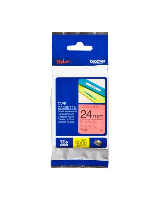 Características:A Fita Brother TZE451 é ideal para etiquetagem geral em superfícies lisas e planas, apresente texto legível por muito tempo e é resistente e durável e perfeita para aguentar intempéries do tempo, sendo um produto ideal para uso doméstico e profissional, para as áreas de escritórios, unidades educacionais, saúde e hotelaria!A linha TZE possui etiquetas laminadas, resistentes a temperaturas extremas, resistentes à água, abrasão e a produtos químicos, além de não desbotarem e possuírem uma película de proteção fácil de destacar.Detalhes:- Marca: Brother;- Modelo: TZE451;- Linha: Fita Rotuladora;- Família: Linha TZE tape;- Cor da fita: Vermelho;- Cor da escrita: Preto;- Tamanho: 24mm;- Contém: 1 unidade do produto;- Fita laminada;- Não desbota;- Possui alta aderência;- Durável;- Atóxica.Indicada para:- A TZE451 é indicada para superfícies lisas e planas.Compatibilidade:- Compatível com os modelos de rotuladores: PTD600, PTD600VP, PTE500, PTE550W, PTH500, PTH500LI, PTP700, PTP750W, PTP900W, PTP950NW, PT330, PT350, PT520, PT530, PT540, PT550, PT-580C, PT1400, PT1500PC, PT1600, PT1650, PT2030, PT2030AD, PT2030VP, PT2200, PT2210, PT2300, PT2310, PT2400, PT2410, PT2430PC, PT2500PC, PT2600, PT-2610, PT2700, PT2710, PT2730, PT2730VP, PT3600, PT7500, PT7600, PT9200DX, PT9200PC, PT9400, PT9500PC, PT9600, PT9700PC, PT9800PCN, PTOUCH® PC, RL700S.Resistência:- Temperaturas extremas (-80°C até +150°C);- A água, sol, umidade, substâncias químicas, abrasão, e poeira.Tipo de fita:- Laminada e ecológica.Medidas:- Largura: 24mm (2,4cm);- Comprimento: 8m.* As especificações podem ser alteradas sem aviso prévio ** Imagem meramente ilustrativa.