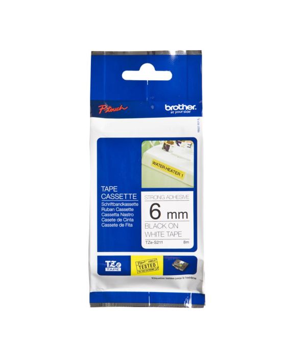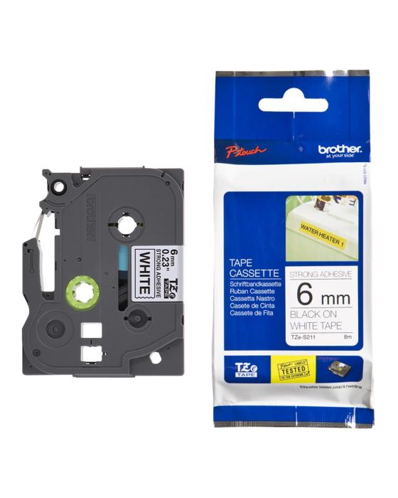 Características:As fitas Brother TZE335 são indicadas para superfícies lisas e, planas, e em superfícies texturizadas como paredes e com grande chance de acúmulo de poeira ou oleosidade, possuem tecnologia única de laminação, que possibilita a criação de etiquetas duráveis e resistentes que podem se expostas a diferentes temperaturas permitindo que você crie etiquetas para diversos tipos de aplicação, seja para uso doméstico ou profissional!A linha TZE possui etiquetas laminadas, resistentes a temperaturas extremas, resistentes à água, abrasão e a produtos químicos, além de não desbotarem e possuírem uma película de proteção fácil de destacar.Detalhes:- Marca: Brother;- Modelo: TZES211EU;- Linha: Fita Rotuladora;- Família: Linha TZE;- Cor da fita: Branco;- Cor da escrita: Preto;- Tamanho: 6mm;- Contém: 1 unidade do produto;- Fita laminada e com super cola;- Não desbota;- Possui alta aderência;- Durável;- Atóxica.- Compatível com os modelos: Indicada para:- A TZES211EU é ideal para ser aplicada em paredes texturizadas ou com grande chance de acúmulo de poeira ou oleosidade.Compatibilidade:- Compatível com os modelos de rotuladores: PTH105, PTH110, PTE110, PTD200, PTD210, PTD400, PTP300BT, PTE500, PTE550WVP, PTP700, PT1880, PT9700PC, PT9800PCN, PTP900W e PTP950NW.Resistência:- Temperaturas extremas (-80°C até +150°C);- A água, sol, umidade, substâncias químicas, abrasão, poeira, áreas sujeitas ao frio.Tipo de fita:- Laminada, com super cola e ecológica.Medidas:- Largura: 6mm (0,6cm);- Comprimento: 8m.* As especificações podem ser alteradas sem aviso prévio ** Imagem meramente ilustrativa.