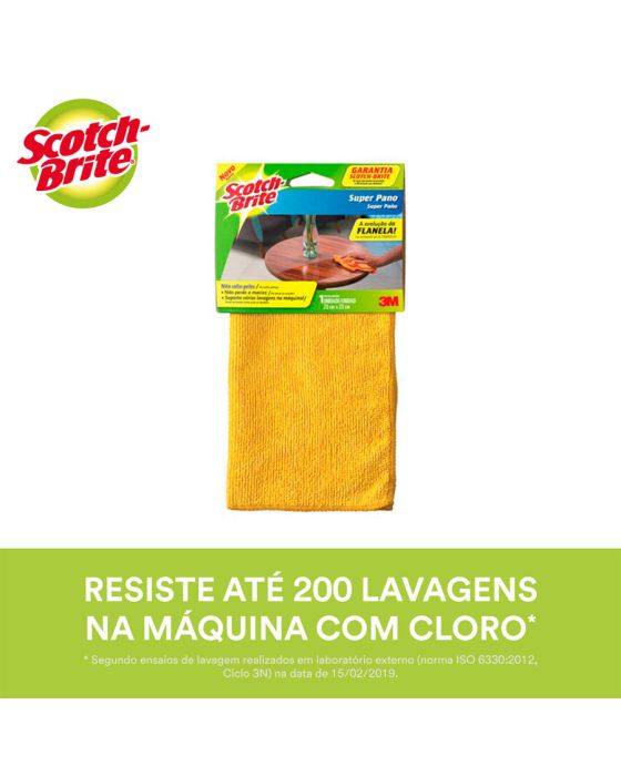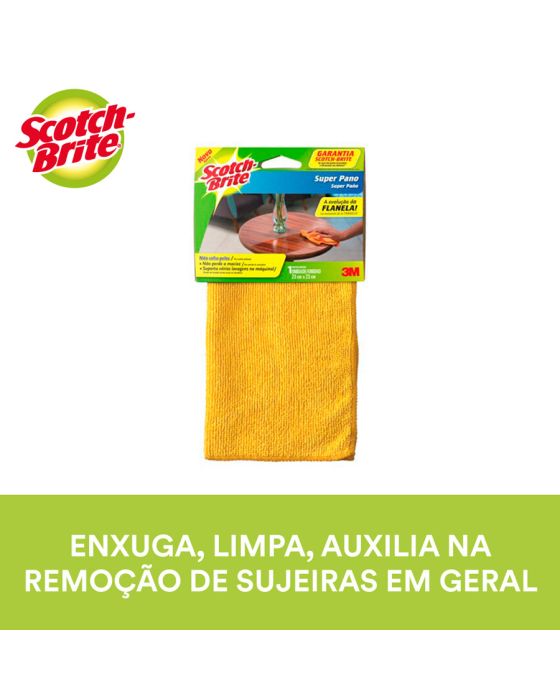 Características:O Super Pano Flanela Scotch-Brite® enxuga, limpa e auxilia na remoção de sujeiras em geral. Sua alta resistência permite lavá-lo manualmente em tanque ou em máquina de lavar roupa, resistindo até 200 lavagens na máquina com cloro².O mais novo conceito de pano de limpeza, para você dar adeus a flanela tradicional. O super pano enxuga, limpa, auxilia na remoção de sujeiras em geral e possui tecnologia especial para absorver o pó a seco. E ainda, não solta pelos após a limpeza e não perde o tato atoalhado após lavagem. Sem falar que você pode lavar tranquilamente pois o super pano não solta tinta.Detalhes:- Marca: Scotch-Brite®;- Fabricante: 3M®;- Modelo: Super Pano Flanela Scotch-Brite®;- Referência: HB004262141;- Linha: Panos para limpeza;- Cor: Amarela;- Uso: Limpeza em Geral;- Contém: 1 embalagem do produto com 1 unidade;- Ideal para móveis em geral;- Absorve até 3,5x mais;- Resiste até 200 lavagens na máquina com cloro.Modo de lavagem:- Pode ser lavado manualmente em tanque ou máquina de lavar.Medidas:- Composição: 23 x 23cm (CxL).Conteúdo da embalagem: 1 Flanela 23x23cm Amarela C/1 Super Pano Scotch Brite 3m.* As especificações podem ser alteradas sem aviso prévio ** Imagem meramente ilustrativa.