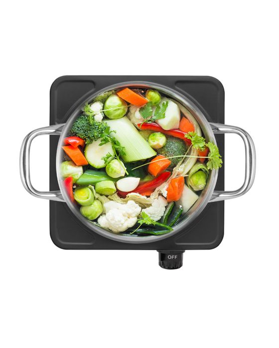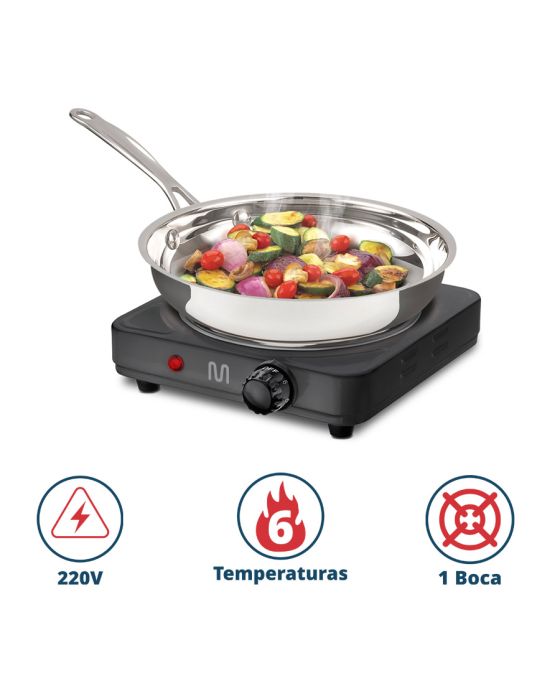 Características:- Portabilidade e eficiência para uso em diversos ambientes: O fogão elétrico Easy Cook CE153 da Multi é projetado para oferecer praticidade no preparo de refeições em locais variados, como residências, áreas externas, viagens, acampamentos e praias. Com funcionamento totalmente elétrico, elimina a necessidade de gás, aumentando a segurança e permitindo o uso em espaços sem infraestrutura convencional.- Desempenho térmico com controle ajustável: Equipado com resistência elétrica de aquecimento rápido, possui 6 níveis de temperatura ajustáveis que garantem controle preciso e adequado ao tipo de preparo desejado. Sua potência de 1000W aliada à tensão de 220V proporciona cocção eficiente e uniforme.- Compatível com todos os tipos de panela: A estrutura do fogão Easy Cook é compatível com panelas de diferentes materiais, ampliando sua aplicabilidade na rotina doméstica ou em ambientes temporários. Ideal para quem precisa de uma solução prática e rápida para o preparo de alimentos.- Design compacto e resistente: O produto possui acabamento na cor preta, estrutura robusta e base estável. Seu tamanho compacto facilita o transporte e o armazenamento, tornando-o uma opção ideal para espaços reduzidos ou uso portátil.- Marca e confiabilidade: Com foco em inovação e usabilidade, os produtos Multi são desenvolvidos para facilitar o dia a dia, sempre com atenção à segurança, eficiência e custo-benefício.Especificações técnicas- Dimensões do produto:Comprimento: 23,5cm;Largura: 20,5cm;Altura: 6,5cm;Peso: 1,334kg.* As especificações podem ser alteradas sem aviso prévio ** Imagem meramente ilustrativa.