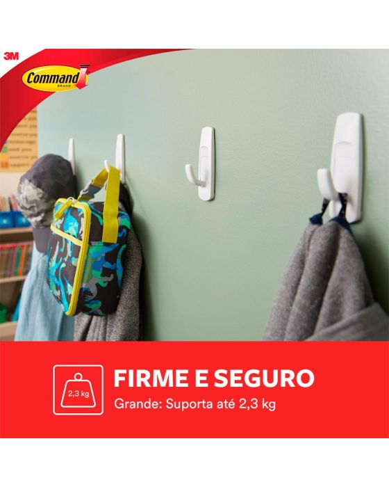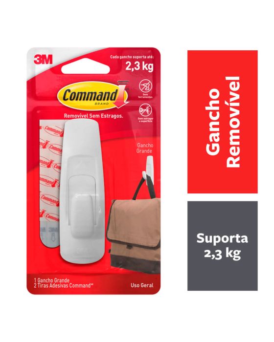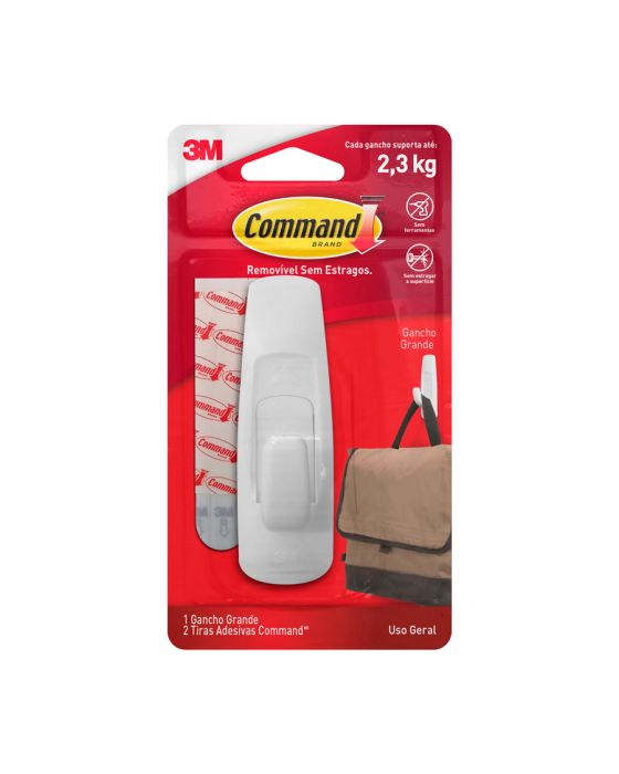 Caracteristicas:- Não estragam as paredes- Não deixam resíduos- Adesivo 3M- Fáceis de aplicar- Fáceis de remover- Podem ser aplicados em várias superfícies- Podem ser utilizados em áreas úmidas- Command é um adesivo removível com ganchos para decorar e organizar a sua casa de forma prática, sem sujeira e sem furos na parede. - A tecnologia do adesivo Command permite trocar o gancho de lugar sem danificar as paredes.- Ideal para organizar cozinhas e lavanderias. - Cada embalagem contém 1 gancho Utensílio grande com 2 adesivos grandes. - Cada gancho suporta até 2,3kg.* As especificações podem ser alteradas sem aviso prévio ** Imagem meramente ilustrativa.