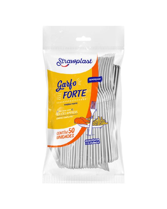 Garfo Descartavel Forte Branco C/ 50 Strawplast Gsb-506