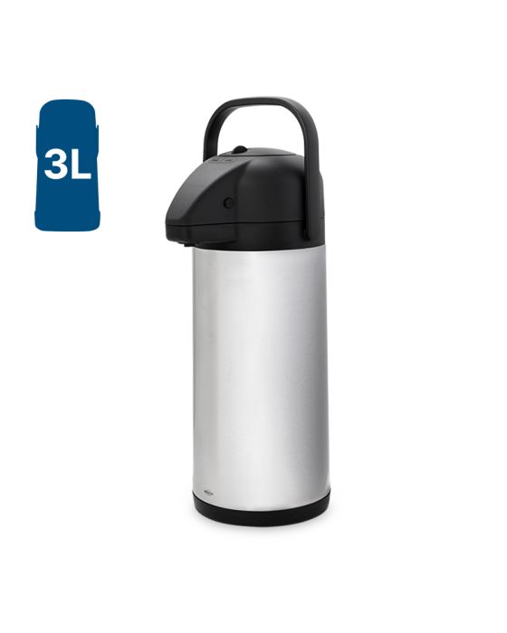 Características:Com estrutura em alumínio que não acumula resíduos e facilita a limpeza, a Garrafa térmica de 3L da Brinox possui ampola de aço inox com sistema a vácuo que, conserva a temperatura da sua bebida quente ou fria por mais tempo, garantindo até 6 horas de autonomia. Seu acionamento, através de uma bomba, potencializa a pressão e facilita a saída do líquido. Além disso, a garrafa possui uma trava que garante mais segurança ao utilizar líquidos quentes. Sua alça de transporte facilita a mobilidade do produto.Detalhes:- Marca: Brinox;- Modelo: Clássica;- Referência: 1389/102;- Linha: Garrafas Térmicas;- Cor: Inox/Preta;- Capacidade: 3L;- Contém: 1 unidade do produto;- Acabamento: Lisa;- Sistema de Servir: Bomba;- Ampola de aço inox;- Mantém a temperatura por mais tempo;- Moderno sistema à Vácuo;- Possui sistema de trava;- Possui base giratória;- Com alça de transporte.Fabricado na China | Validade indeterminada.Conservação Térmica:- Para bebidas quentes: 8 horas.Instruções de uso:- Retire a tampa;- Coloque um pouco de água quente (para aquecer a ampola), feche o bule ou garrafa térmica por dois minutos e em seguida descarte a água. Este processo auxiliará para que o sistema térmico do produto seja ainda mais eficiente.- Caso vá usar o bule ou garrafa térmica para manter o líquido gelado, faça o mesmo procedimento, porém usando água fria;- Em seguida, coloque o líquido que deseja manter termicamente. Utilize a capacidade total do bule ou garrafa térmica, diminuindo a quantidade de ar no recipiente. Essa medida auxiliará para que o sistema térmico seja ainda mais eficiente, mantendo o líquido quente ou frio por mais tempo;- Coloque a tampa e feche bem.Recomendações:- Para manter seus produtos bonitos por mais tempo, lave-as com esponja macia e sabão ou detergente neutro após o uso. Produtos abrasivos como palha e outros poderão riscar ou prejudicar o brilho;- Enxágue bem com água quente e seque em seguida para evitar manchas.Composição:- Fabricado em Polipropileno, Aço inoxidável e Alumínio.Medidas:- Dimensões: 20 x 15 x 39,5cm (CxLxA);- Diâmetro: 20cm.Garantia do fornecedor: 90 dias para vícios ou defeitos de fabricação.* As especificações podem ser alteradas sem aviso prévio ** Imagem meramente ilustrativa.