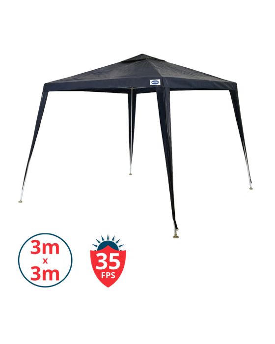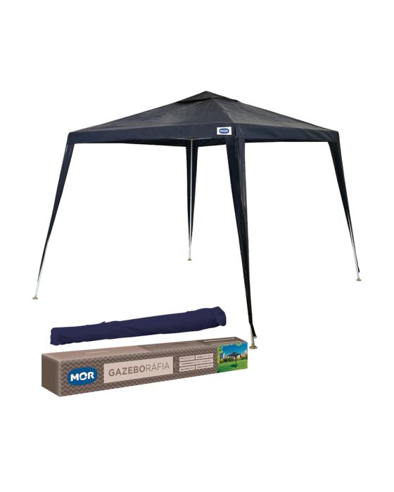 Características:- Sombra prática para ambientes externos: Ideal para uso em praias, jardins, piscinas, feiras e eventos corporativos ao ar livre. Proporciona proteção solar e conforto em atividades externas com montagem simples e transporte facilitado.- Cobertura com proteção solar FPS 35: Confeccionado em ráfia 100% virgem na cor azul escuro, o tecido oferece proteção contra os raios solares (FPS 35), sendo leve, resistente e de fácil manutenção.- Estrutura reforçada e estável: Com tubos de aço carbono e pintura epóxi à pó, garante resistência mecânica e durabilidade. Pés reforçados e pontos de fixação por cordas aumentam a estabilidade da estrutura.- Saída de ar superior: Topo com abertura para ventilação, permitindo a passagem do vento e reduzindo o risco de deslocamento em áreas externas.- Montagem e transporte facilitados: Acompanha sacola para transporte e instruções de montagem. Estrutura desmontável, ideal para uso temporário com reaproveitamento contínuo.- Fabricante: Mor- Modelo: Gazebo Ráfia- Cor: Azul escuro- Dimensões montado:Comprimento: 3mLargura: 3m;Altura: 2,5m;Peso: 5,62 kg.- Dimensões da embalagem: Comprimento: 1,10m;Largura: 15,1cm;Altura: 15cmPeso: 5,62kg.- Garantia do fabricante: 90 dias contra defeitos de fabricação (não cobre danos causados por intempéries).- Conteúdo da embalagem: 1 gazebo desmontável.* As especificações podem ser alteradas sem aviso prévio ** Imagem meramente ilustrativa.