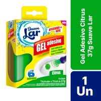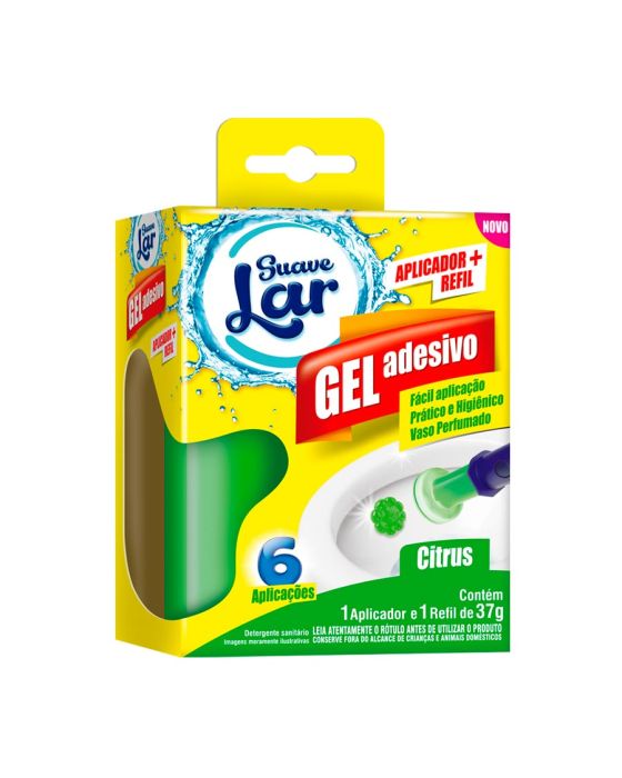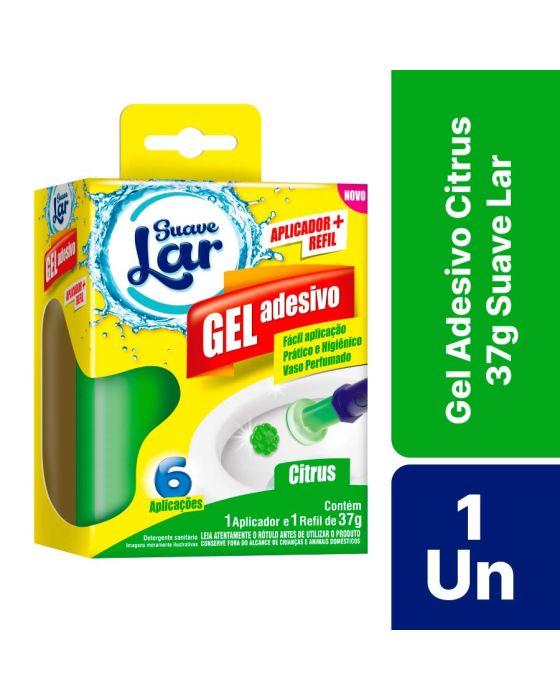 Características:- Higiene prática e eficiente: O Gel Adesivo Citrus 37g Suave Lar foi desenvolvido para oferecer máxima limpeza e frescor ao vaso sanitário, mantendo o ambiente agradável por mais tempo. Sua formulação com detergentes sanitários garante alto desempenho na remoção de odores indesejados, deixando as superfícies sempre limpas e perfumadas.- Aplicação simples e higiênica: Acompanha aplicador + refil, permitindo uma utilização prática, sem contato direto com o produto. Cada refil rende até 6 aplicações, formando um gel adesivo que adere diretamente na porcelana, liberando gradualmente sua fragrância a cada descarga.- Perfume cítrico refrescante: A fragrância Citrus oferece sensação de limpeza e frescor contínuo, proporcionando um ambiente mais agradável e bem cuidado. A ação prolongada do gel mantém o vaso sanitário perfumado de forma prática e discreta.- Economia e rendimento: Com apenas uma aplicação, o produto age por vários usos, garantindo mais durabilidade e custo-benefício. A embalagem de 37g é prática e ideal para uso doméstico.- Confiança Suave Lar: A Suave Lar é uma marca reconhecida pela qualidade em soluções de limpeza e perfumação para o lar, oferecendo produtos que unem praticidade, eficiência e cuidado no dia a dia.Composição: Lauril éter sulfato de sódio, aditivo, coadjuvante, tensoativo não iônico, emulsificante, corante, essência e veículo.- Dimensões da embalagem:Comprimento: 8,9cm;Largura: 5cm;Altura: 12,3cm;Peso: 88g .ATENÇÃO! MANTENHA FORA DO ALCANCE DAS CRIANÇAS E DOS ANIMAIS DOMÉSTICOS.* As especificações podem ser alteradas sem aviso prévio ** Imagem meramente ilustrativa.