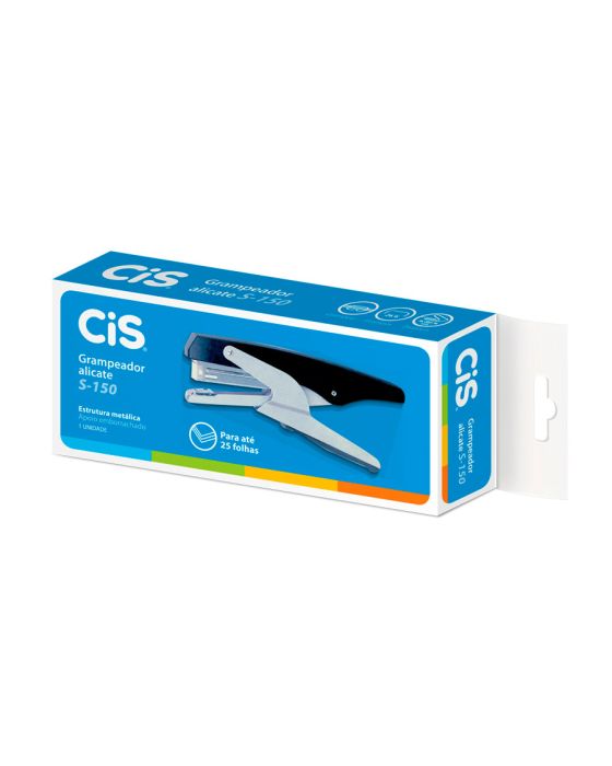 Caracteristicas:- Marca: CiS.- Modelo: S150.- Linha: Grampeadores.- Cor: Preto e cinza.- Medidas: 16,5 x 3 x 7cm (C x L x A).- Grampeia até: 25 folhas por vez..- Tamanho do grampo: 26/6- Grampeador alicate- Corpo metálico- Apoio Emborrachado- Trilho fixo * As especificações podem ser alteradas sem aviso prévio ** Imagem meramente ilustrativa