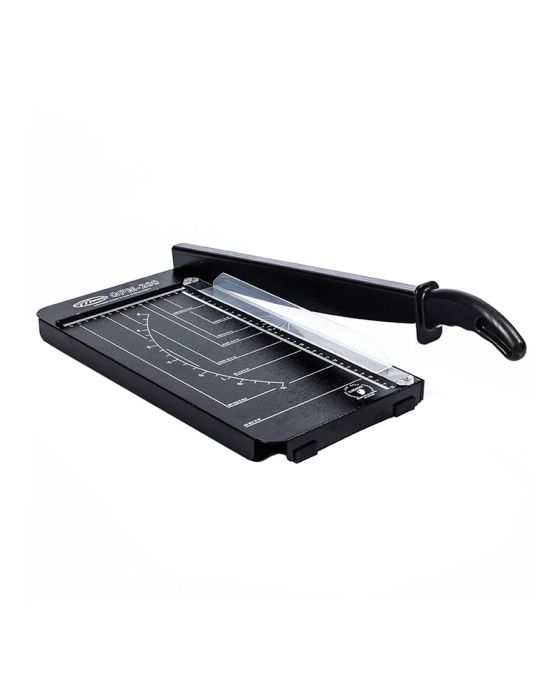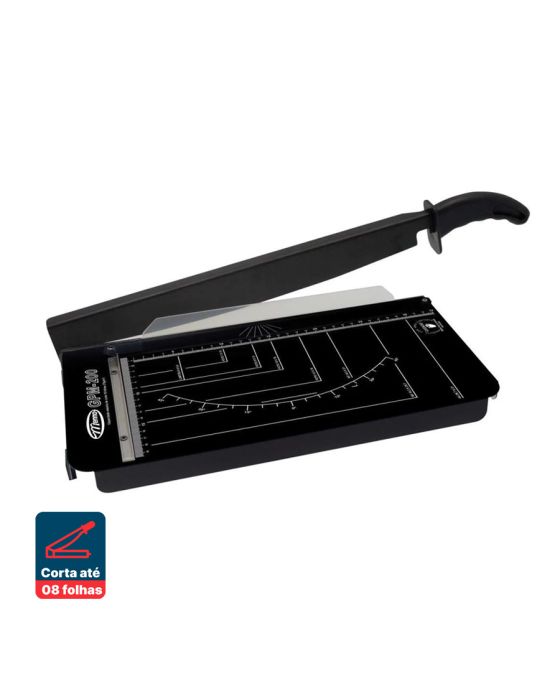 Caracteristicas:- Ideal para dar precisão e acabamento em qualquer tipo de papel- De fácil manuseio e tamanho compacto pode ser usado em empresas de encadernações, bibliotecas, escritórios de contabilidade e advocacia.- Base pintada com tinta eletrostática - Serigrafia com escala milimétrica- Peso: 1,49 Kg- Dimensões: 526 x 226 x 82mm- Dimensões do tampo: 395,4 x 200mm- Capacidade de corte: 08 folhas de 75g/m2- Coprimento do corte: 330mm- Apoio em borracha para maior aderência * As especificações podem ser alteradas sem aviso prévio ** Imagem meramente ilustrativa