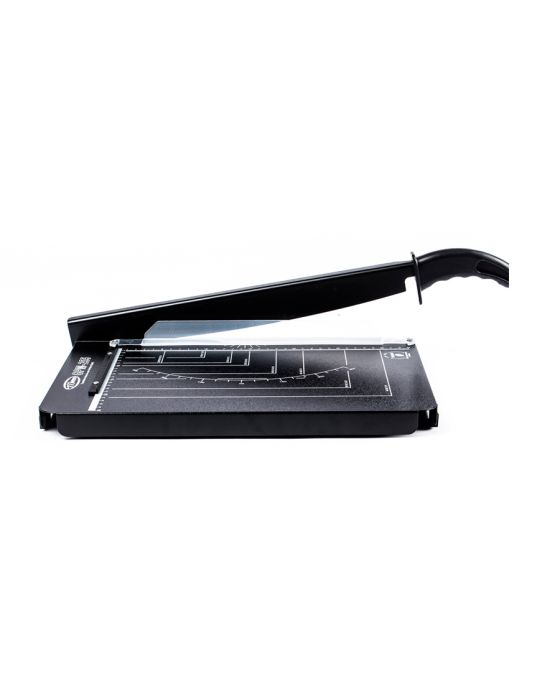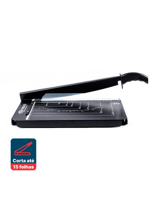 Caracteristicas: - Marca Menno, referência 255 - Capacidade de corte: 15 folhas de 75g - Comprimento de corte: 330 mm - Base pintada com tinta eletrostática - Serigrafia com escala milimétrica - Dimensões do tampo: 395,4 x 255 mm - Dimensões: 526 x 281 x 82 mm - Peso: 1,67 kgImagens meramente ilustrativas