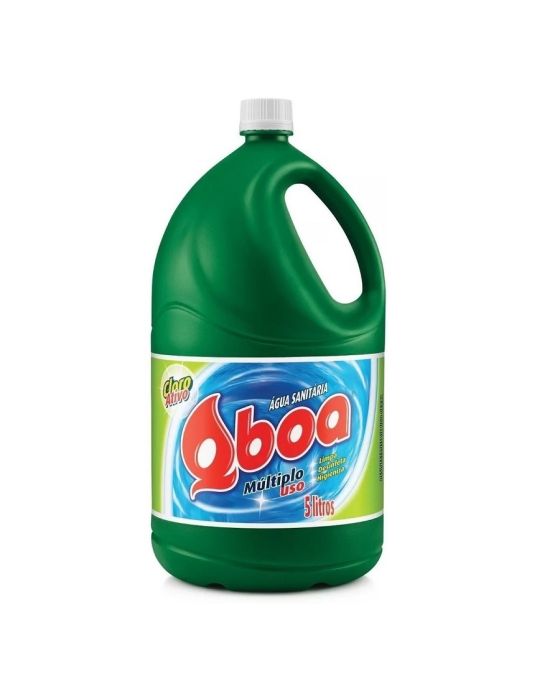 Caracteristicas:MATA MAIS BACTÉRIAS EM MENOS TEMPO!A água sanitária Qboa está presente em milhões de lares, levando saúde e bem-estar para as famílias. Sua fórmula, com cloro ativo, passa por um rigoroso processo de qualidade, que comprova o poder bactericida, sua eficiência na higienização de hortifrutícolas e desinfecção em diversos locais de concentração de germes e bactérias. Qboa é garantia de proteção para a sua casa e sua família.- Frasco com Bico Direcionador- Limpa, Desinfecta e Higieniza- Composição: Hipoclorito de Sódio e Água- Princípío Ativo: Hipoclorito de Sódio- Teor de Cloro Ativo: 2,0% a 2,5% p/p- Quantidade: 5 Litros * As especificações podem ser alteradas sem aviso prévio ** Imagem meramente ilustrativa