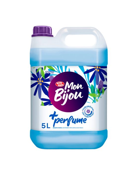 Características:Com o novo Mon Bijou suas roupas ficarão perfumadas por muito mais tempo até depois de secas. A exclusiva cápsula de perfume proporciona uma experiência única de perfumação e cuidado durante o uso. Sua fórmula ainda conta com a ação passa fácil, que evita rugas e dobras nos tecidos!Detalhes: - Marca: Mon Bijou.- Fabricante: Bombril.- Linha: Mais Perfume.- Tipo: Amaciante de roupas.- Volume: 5 Litros.- Contém: 1 unidade do produto.- Mais perfume por mais tempo.Válido por 3 anos a partir da data de fabricação.Modo de usar: - Após a lavagem completa, adicione 80 ml (equivalente a um copo americano) de Mon Bijou diretamente no reservatório ou diluído em água limpa e enxágue novamente.Composição:- Cloreto de diestearil dimetil amônio, coadjuvante, conservantes, espessantes, corantes, fragrâncias e água.Recomendações:- Use sempre a dosagem recomendada, siga as orientações de lavagem contidas nas etiquetas das roupas.- Nunca adicione diretamente sobre as roupas.- Lave o copo usado para medição antes de reutilizá-lo.Precauções:- Não ingerir, em caso de ingestão não provoque vômito e procure imediatamene um médico.- Evite a inalação, aspiração, contato com os olhos e a pele, em caso de contato, lave imediatamente com água em abundância.- Mantenha o produto em sua embalagem original. Não misture com outros produtos.- Nao reutilize a embalagem para outros fins.* Leia atentamente o rótulo antes de usar o produto.ATENÇÃO: CONSERVE FORA DO ALCANCE DAS CRIANÇAS E DOS ANIMAIS DOMÉSTICOS.* As especificações podem ser alteradas sem aviso prévio ** Imagem meramente ilustrativa