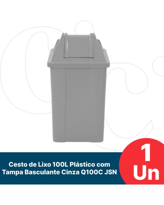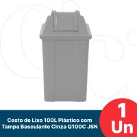 Cesto De Lixo 100l Plastico C/ Tampa Basculante Cinza Q100c Jsn