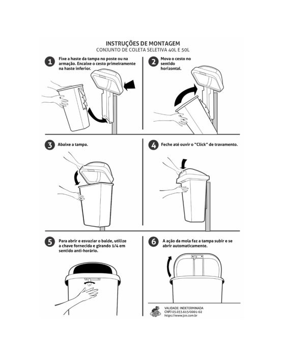 Características:- Cesto para coleta seletiva com estrutura resistente e uso controlado: O Cesto de Lixo 50L Coleta Seletiva Cinza ST6C JSN foi desenvolvido para oferecer uma solução prática, segura e durável na gestão de resíduos em ambientes internos e externos. Fabricado em polipropileno (PP) injetado com proteção UV, apresenta elevada resistência mecânica e maior durabilidade mesmo quando exposto às condições climáticas, mantendo sua integridade e aparência ao longo do tempo.- Sistema de segurança e prevenção integrado: O modelo conta com sistema de fechadura com chave, que impede o acesso não autorizado aos resíduos, contribuindo para maior controle, higiene e organização em áreas públicas ou corporativas. Possui ainda apagador de cigarros em aço inox, recurso importante para a prevenção de incêndios acidentais, especialmente em locais de grande circulação de pessoas.- Estrutura funcional e fácil instalação: A lixeira acompanha haste de fixação em plástico PE preto, garantindo estabilidade e segurança durante o uso. O conjunto inclui chave plástica e adesivo de identificação, facilitando a padronização visual da coleta seletiva. Com capacidade de 50 litros, atende demandas médias de descarte sem comprometer o espaço físico do ambiente.- Indicado para ambientes corporativos e áreas públicas: Indicada para uso em empresas, condomínios, comércios, áreas administrativas, escolas, hospitais, shoppings e espaços públicos em geral. Sua cor cinza identifica o descarte de resíduos não recicláveis, auxiliando na organização da coleta seletiva e no cumprimento de boas práticas ambientais.- Marca de confiança: A JSN é especializada na fabricação de utilitários plásticos que aliam resistência, praticidade e custo-benefício. Seus produtos são desenvolvidos para oferecer soluções funcionais ao dia a dia, atendendo tanto consumidores domésticos quanto demandas profissionais, sempre com foco em qualidade e durabilidade.- Dimensões do produto: Comprimento: 44cm; Largura: 33,2cm; Altura: 74cm; Peso: 1kg.* As especificações podem ser alteradas sem aviso prévio ** Imagem meramente ilustrativa.