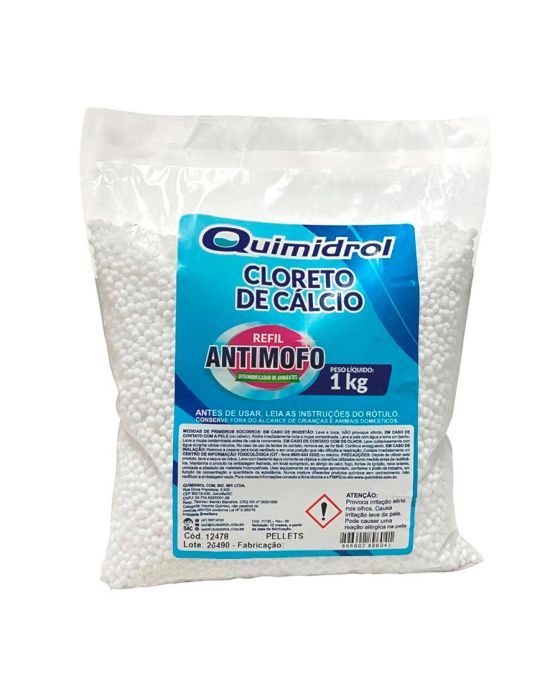 Características:- Desumidificação eficiente para ambientes fechados: O Cloreto de Cálcio em pellets (formato bolinha) da Quimidrol é uma solução altamente eficaz no controle da umidade relativa do ar em espaços internos. Ao absorver o excesso de umidade, previne o surgimento de mofo, bolor, odores desagradáveis e a corrosão de superfícies metálicas, promovendo um ambiente mais seco, saudável e protegido.- Formato granular com alto rendimento: Apresentado em pellets esféricos, o produto possui rápida ação higroscópica, aumentando a eficiência de absorção e garantindo longa durabilidade. Ideal para uso em refis de desumidificadores, o formato bolinha facilita a dispersão uniforme no recipiente e evita compactação, contribuindo para melhor desempenho ao longo do tempo.- Aplicações recomendadas: Recomendado para armários, closets, gavetas, depósitos, caixas de armazenamento, veículos e outros espaços sujeitos à umidade. Amplamente utilizado em residências, ambientes comerciais, embarcações, motorhomes e áreas com pouca ventilação, especialmente durante períodos chuvosos ou em regiões litorâneas.- Marca com expertise em soluções químicas industriais: Quimidrol é uma empresa brasileira com tradição no fornecimento de produtos químicos de alta qualidade.- Dimensões da embalagem:Comprimento: 20cm;Largura: 16cm;Altura: cm;Peso: 1kg.IMPORTANTE! CONSERVAR FORA DO ALCANCE DAS CRIANÇAS E DOS ANIMAIS DOMÉSTICOS.* As especificações podem ser alteradas sem aviso prévio ** Imagem meramente ilustrativa.