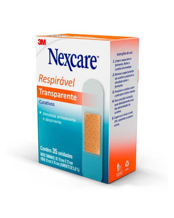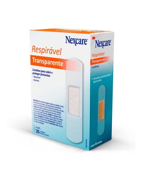 Caracteristicas:Ideal para proteger pequenos ferimentos. É resistente, transparente e deixa a pele transpirar. - Contém 35 unidades- Resistentes- Discretos- Deixam a pele transpirar- Almofada antiaderente e absorventeComposição: Filme plástico, adesivo acrílico, compressa absorvente de não tecido e liner.Instruções de uso: 1. Limpe e seque bem o ferimento. Retire o curativo do envelope.2. Remova o papel protetor do curativo e posicione a almofada sobre o ferimento.3. Pressione o curativo sobre a pele para melhor adesão.4. Para uma fácil remoção, puxe delicadamente uma das extremidades do curativo.5. Sugere-se a troca a cada 24h, repetindo os passos acima.* As especificações podem ser alteradas sem aviso prévio ** Imagem meramente ilustrativa