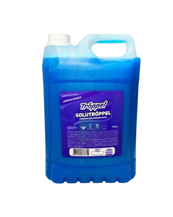 Características:Com o Solutróppel você terá uma poderosa ação desengraxante, sendo um produto alcalino e destinado para a limpeza de latarias, peças, rodas e especialmente utensílios com alto grau de sujidade, graxas e óleos. Pode ser utilizado em motores, peças, pisos e etc, e possui alto grau de ativos em sua fórmula limpando mais sem agredir as peças.Detalhes:- Marca: Tróppel;- Modelo: Intertóppel;- Linha: Desengraxante alcalino;- Volume: 5 Litros;- Contém: 1 unidade do produto;- Embalagem econômica;- Limpeza pesada;- Poderosa ação desengraxante.Ideal para: - Grelhas de aço, pisos engordurados, superfícies com graxa, limpeza de latarias, peças, rodas e especialmente utensílios e peças de alumínio.Modo de usar:- Diluir uma parte do produto em até 20 partes iguais de água, de acordo com o grau de sujidade;- Aplique sobre a lataria ou peça a ser limpa com pano ou espuma;- Enxágue em seguida. Precauções:- Não Ingerir;- Evitar inalação ou aspiração, contato com os olhos e contato com a pele.Composição: - Linear alquil benzeno sulfonato de sódio, alcalinizante, tensotativo aniônico, espessante, corantes e veículos.* Leia atentamente as instruções do rótulo antes de usar.ATENÇÃO! CONSERVE FORA DO ALCANCE DAS CRIANÇAS E DOS ANIMAIS DOMÉSTICOS.* As especificações podem ser alteradas sem aviso prévio ** Imagem meramente ilustrativa.