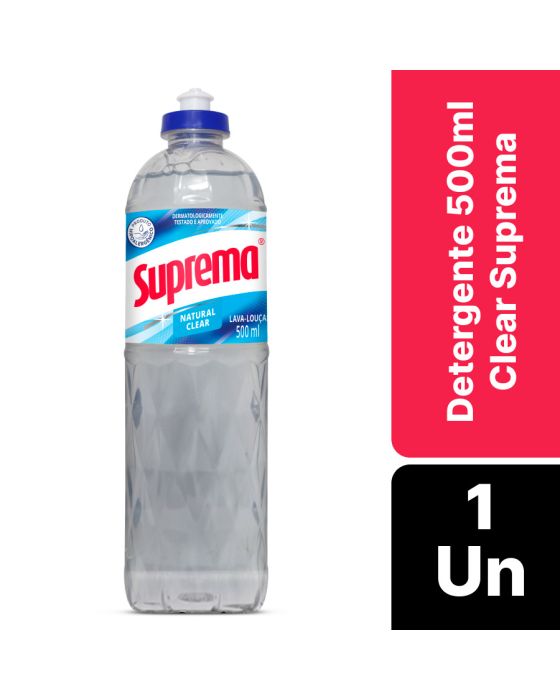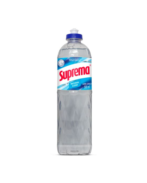 Características:- Poder de limpeza com cuidado e sustentabilidade: O Detergente 500ml Natural Clear Suprema foi desenvolvido para proporcionar eficiência máxima na remoção de gorduras, mantendo a delicadeza no cuidado com as mãos e contribuindo para um uso mais consciente e sustentável. Ideal para a lavagem manual de louças, talheres, utensílios e também para a limpeza de superfícies como pisos, portas e vidros, é perfeito para uso doméstico ou profissional.- Fórmula avançada para resultados superiores: Sua composição combina tensoativos aniônicos biodegradáveis com agentes neutralizantes, coadjuvantes e fragrâncias suaves, garantindo alto rendimento e brilho impecável nas superfícies lavadas. O produto é dermatologicamente testado, oferece secagem rápida e é formulado para não agredir a pele, tornando a rotina de limpeza mais confortável.- Eficiência prática no dia a dia: O detergente Suprema pode ser aplicado puro diretamente na esponja ou diluído em água, permitindo economia de produto conforme a necessidade de uso. Sua consistência equilibrada facilita o enxágue e evita resíduos, proporcionando louças limpas, brilhantes e sem marcas de gordura.- Sustentabilidade aliada à performance: Com tensoativo biodegradável, o Lava-Louças Natural Clear Suprema ajuda a reduzir o impacto ambiental sem comprometer a eficiência de limpeza. Sua formulação foi desenvolvida para aliar alta performance a práticas mais conscientes de consumo.- Tradição e confiança Suprema: A marca Suprema é reconhecida no mercado de higiene e limpeza por investir em tecnologia, pesquisa e sustentabilidade, entregando produtos que unem eficiência e cuidado com o consumidor e o meio ambiente. O detergente neutro é a escolha ideal para quem busca praticidade, economia e respeito à natureza.Dimensões do produto:Comprimento: 6,2 cmLargura: 6,2 cmAltura: 22,5 cmPeso: 526 gATENÇÃO! CONSERVE FORA DO ALCANCE DAS CRIANÇAS E DOS ANIMAIS DOMÉSTICOS.* As especificações podem ser alteradas sem aviso prévio ** Imagem meramente ilustrativa.