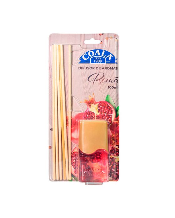 Características:Coala Difusor de Aromas Coala é um excelente aromatizador de ambientes, mantendo o perfume por mais tempo. Além de garantir o aroma, o jogo de varetas que acompanha o produto compõe com o frasco e decora o ambiente com design moderno.Com a variedade de fragrâncias é possível variar o uso entre os ambientes, garantindo sensações únicas em cada um.Detalhes:- Marca: Coala.- Modelo: Difusor.- Linha: Difusor de Aromas.- Fragrância: Romã.- Quantidade: 100ml.- Contém: 1 embalagem com uma unidade do produto.- Medidas da embalagem: 5 x 12 x 24,5cm (CxLxA).- Peso: 0,152kg.Onde usar:- Pode ser usado em ambientes como quartos, salas estar/ jantar, banheiros, lavabos, escritórios, salas de reunião entre outras.Modo de usar:- Retire a tampa, remova o lacre e recoloque a tampa externa.- Em seguida, coloque as varetas no frasco, para que absorvam o perfume.- Na primeira vez, após duas horas inverta as varetas.- Caso queira interromper o uso, basta retirar as varetas e fechar o frasco.Indicações:- No primeiro uso: Retire a tampa, remova o lacre e recoloque a tampa externa. Em seguida, coloque as varetas no frasco, para que absorvam o perfume. Após duas horas inverta as varetas.- No decorrer dos dias: Um dos fatores que podem fazer o perfume no ambiente ficar fraco são as varetas secas. Para renovar a intensidade inverta as varetas para que elas fiquem umedecidas e haja maior liberação da fragrância.- A intensidade da fragrância pode ser controlada pela quantidade de varetas inseridas no difusor: com menos varetas o perfume liberado será mais suave. Para manter o ambiente com aroma mais intenso, utilize todas as varetas que acompanham o seu Difusor de Aromas Coala.Cuidados Extra:- A duração do produto é diretamente influenciada pelas condições climáticas como calor, frio e exposição ao sol. Em ambientes grandes, pode ser necessário dois ou mais difusores. É recomendado não deixar próximo a saídas de ar condicionado, janelas e cortinas.- É importante manter o difusor em um local fora do alcance de crianças e de animais de estimação.Composição:- Fragrância, Veículo, Estabilizante, Conservante e Corante.ATENÇÃO: NÃO INGERIR.O PRODUTO CONTÉM COMO DESNATURANTE O BENZEOATO DE DENATÔNIO.Conteúdo da embalagem:- 1 frasco difusor, 6 varetas.* As especificações podem ser alteradas sem aviso prévio ** Imagem meramente ilustrativa.