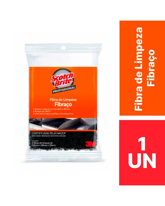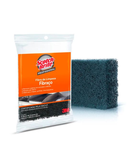 Características:O Fibraço 3M™ Scotch-Brite™ Limpeza Pesada é próprio para o mercado de Food Service, sendo usado em cozinhas industriais, restaurantes, bares, padarias, hotéis, fast food e indústrias de alimentos. Resistente à altas temperaturas (até 190°), o Fibraço é indicado para limpeza de grelhas, chapas, fornos e panelões.O Fibraço 3M™ Scotch-Brite™ Profissional é um produto de alta performance que garante a higiene, a produtividade e a segurança dos funcionários e clientes. Faz a limpeza ultra pesada de superfícies, substituindo a palha de aço. É um produto certificado pela HACCP International, o que oferece a garantia da capacidade de suportar a integridade e a segurança do alimento em aplicações de limpeza.Detalhes:- Marca: Scotch-Brite™;- Fabricante: 3M™;- Modelo: Fibraço 3M™ Scotch-Brite™ Limpeza Pesada;- Referência: H0001467192;- Linha: Fibras de limpeza;- Cor: Cinza;- Contém: 1 embalagem com 5 fibras de limpeza;- Tamanho: 25 x 86 x 125mm (2,5 x 8,6 x 12,5cm) (AxLxC);- Faz a limpeza ultra pesada de superfícies, substituindo a palha de aço;- Produto de alta performance que garante a higiene, a produtividade e a segurança dos funcionários e clientes;- Resistente à altas temperaturas (190°C) - ideal para limpeza de chapas e grelhas;- Produto certificado pela HACCP International: garantia da capacidade de suportar a integridade e segurança do alimento em aplicações de limpeza.Indicado para:- Indicado para limpeza de sujeiras pesadas em chapas, grelhas, fornos e panelões.Usado para:- Usado em cozinhas industriais, restaurantes, bares, padarias, hotéis, fast food e indústrias de alimentos.Medidas:- Dimensões do produto: 25 x 86 x 125mm (2,5 x 8,6 x 12,5cm) (AxLxC);- Peso: 300g.* As especificações podem ser alteradas sem aviso prévio ** Imagem meramente ilustrativa.