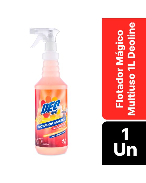 Características:- Limpeza potente e sem esforço em embalagem prática: O Flotador Mágico Multiuso 1L Deoline foi formulado para entregar limpeza profunda com baixo esforço, ideal para remoções difíceis em cozinhas, churrasqueiras, oficinas, banheiros e áreas industriais leves. Sua tecnologia de flotação e tensoativos biodegradáveis possibilita que a sujeira se desprenda com rapidez, deixando superfícies limpas e levemente perfumadas sem agredir o material quando usado conforme instrução.- Aplicação versátil e alto rendimento: Indicado para pisos, paredes cerâmicas e emborrachadas, estofados, tecidos, carpetes, fachadas, granito, metais, acrílicos, fórmicas, eletrodomésticos e outras superfícies, o produto pode ser aplicado puro em sujeiras incrustadas ou diluído (1:5 a 1:10) para manutenção. - Rendimento estimado: 1 litro rende até 10 litros de solução, o que torna o frasco com gatilho prático para uso profissional e doméstico.Modo de uso e recomendações práticas: Para sujeiras impregnadas, borrifar o produto puro, aguardar alguns minutos e limpar com pano úmido; evitar deixar secar. Para limpezas gerais diluir conforme necessidade e, em pisos, lavar com mop ou vassoura, enxaguar e secar. Não necessita enxágue em muitas superfícies, antes do uso em materiais sensíveis, realizar teste em área reduzida. Evitar contato prolongado com superfícies pintadas sem teste prévio.- Composição técnica e segurança operacional: Fórmula concentrada contendo poliacrilato de sódio, óxido de dimetil e alquilamina, adjuvante, conservante, corante, essência, sequestrante, tensoativo não iônico e veículo. pH alcalino adequado para remoção de gorduras e sujidades orgânicas; produto de alta performance com tensoativo biodegradável. Seguir instruções de segurança do rótulo e utilizar EPI quando aplicável.- Sobre a marca Deoline: A Deoline é reconhecida por oferecer soluções de limpeza de alto padrão para o mercado profissional e doméstico, combinando tecnologia, segurança e excelente rendimento. - Dimensões do produto:Comprimento: 11cm; Largura: 11cm; Altura: 31,5cm;Peso: 1,110kg.IMPORTANTE! CONSERVAR FORA DO ALCANCE DAS CRIANÇAS E DOS ANIMAIS DOMÉSTICOS.* As especificações podem ser alteradas sem aviso prévio ** Imagem meramente ilustrativa