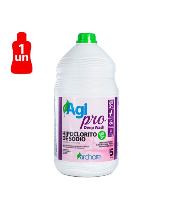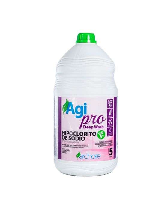 Características:- Hipoclorito de sódio concentrado para desinfecção, branqueamento e limpeza pesada: O Hipoclorito de Sódio 5% Agipro foi desenvolvido para aplicações de desinfecção e limpeza de alto desempenho em ambientes que exigem sanitização eficiente. Formulado à base de hipoclorito de sódio, apresenta elevado poder bactericida, sendo indicado para remoção de sujidades difíceis, branqueamento de tecidos e higienização de diversas superfícies laváveis.- Formulação concentrada com alto rendimento operacional: Com teor de cloro ativo entre 4,5% e 5,5%, o produto oferece alto rendimento em diferentes aplicações, permitindo diluições específicas conforme o tipo de uso. Sua formulação concentrada possibilita economia no consumo e eficiência na limpeza pesada, branqueamento de panos e desinfecção de ambientes.- Ação bactericida eficaz para sanitização de superfícies: O produto apresenta eficácia comprovada contra microrganismos como Staphylococcus aureus e Salmonella choleraesuis, contribuindo para a higienização segura de ralos, vasos sanitários, lixeiras, pisos, azulejos e superfícies laváveis em geral. Sua coloração amarelada facilita a identificação durante a aplicação.- Indicado para limpeza pesada, alvejamento e tratamento de água: Versátil, pode ser utilizado para limpeza geral com diluição de até 1:10, alvejamento de tecidos com diluição de até 1:20 ou desinfecção de superfícies com diluição de até 1:2,5, mantendo ação bactericida eficaz. Também pode ser aplicado em processos de tratamento de água e efluentes conforme orientação técnica adequada.- Sobre a marca Agipro: A Agipro desenvolve soluções profissionais para limpeza e higienização, oferecendo produtos formulados com tecnologia moderna e matérias-primas selecionadas.- Dimensões do produto:Comprimento: 17,5cm;Largura: 17,5cm;Altura: 34,5cm;Peso: 5,33kg.IMPORTANTE! CONSERVAR FORA DO ALCANCE DAS CRIANÇAS E DOS ANIMAIS DOMÉSTICOS.* As especificações podem ser alteradas sem aviso prévio ** Imagem meramente ilustrativa.