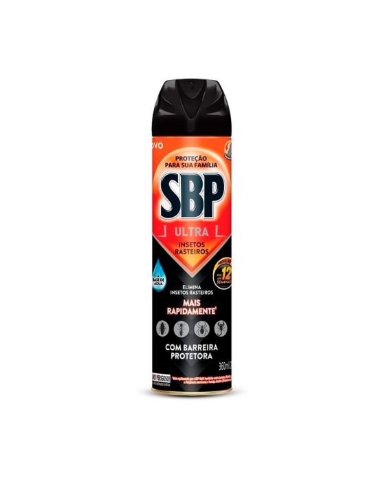 Características:O novo SBP Aerossol ULTRA Barreira Ativa Insetos Rasteiros oferece uma solução eficiente e contínua para manter o ambiente protegido de insetos rasteiros.Detalhes:- Marca: SBP / Reckitt- Modelo: Ultra- Quantidade: 360ml- Peso: 270g- À base de água- Elimina insetos rasteiros- Porteção por até 12 semanasEficaz contra:- Baratas, Formigas, Aranhas, Escorpiões.Forma de aplicação:- Aplique o produto sobre os insetor para eliminá-los- Para uma proteção ainda mais completa, aplique o produto também em varandas, áreas cobertas e áreas protegidas da chuva e luz solar- BARATAS, ARANHA E ESCORPIÃO: Além da aplicação sobre os insetos, aplique na soleira das portas externas, saídas de ar, frestas e rachaduras e outros pontos de entrada.- FORMIGA DOCEIRA: Além da aplicação sobre o inseto, aplique ao redor da casa, latas de lixo, áreas de descarte de alimentos, bninhos de formigas e pontos de entrada da casa.Ingredientes:- Ingrediente ativo: Improtrina 0,07%, Cipermtrina 0,20%- Composição: Ingredientes ativos, solvente, antioxidante, emulsificante, veículo e propelentes. * As especificações podem ser alteradas sem aviso prévio ** Imagem meramente ilustrativa.