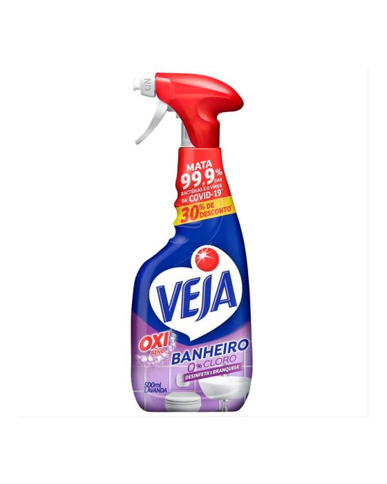 Caracteristicas:Com o Limpador Para Banheiro Antibac Lavanda você desinfeta seu banheiro matando 99,9% das bactérias e ainda pode o deixar chiroso com a fragrância de lavanda.Detalhes:- Marca: Veja / Reckitt.- Modelo: Spray.- Quantidade: 500ml.- Fragrância: Lavanda.- Função: Desinfeta e branqueia- Desinfetante de uso geral- Mata 99,9% das bacterias e o vírus da Covid 19Onde usar:- Banheiros: Aços inoxidáveis, azulejos, ladrilhos vitrificados, pias, armários, box de banheiros, vasos sanitários e banheiras.* Não é recomendado uso em mármore, pisos encerados e superfícies de madeira envernizada.** Utilize luvas em caso de pele sensíveis. Modo de usar: - Para limpeza e desinfecção, aplique o produto até que a superfície esteja totalmente molhada e deixe agir por 10 minutosantes de enxaguar.- Enxague com a área com um pano e remova completamente o produto da superficie. Composição: - Ingrediente ativo, Alquilbenzeno Sulfonato de Sódio, Lauril Éter Sulfato de Sódio, Acidificante, Sequestrante, Fragrância, Branqueador Óptico, Coadjuvantes, Solvente e Água. * As especificações podem ser alteradas sem aviso prévio ** Imagem meramente ilustrativa