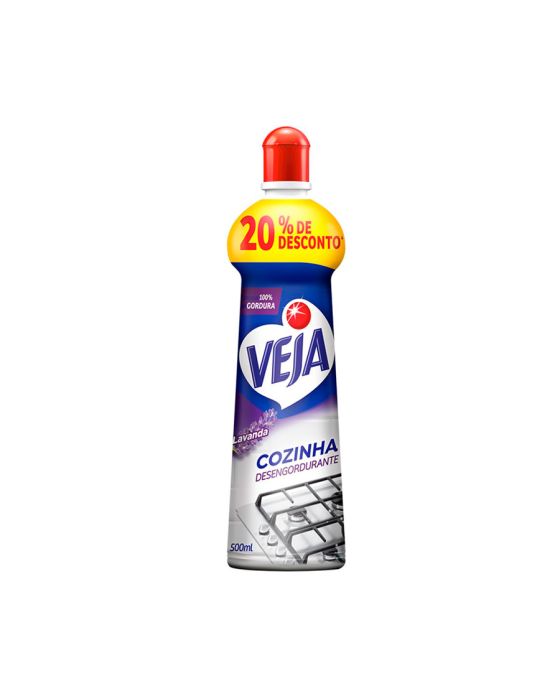 Caracteristicas:A linha Veja® Cozinha Desengordurante é perfeita para somar praticidade na limpeza de superfícies engorduradas. Sua ação instantânea remove até a gordura mais difícil e oferece resultados imbatíveis*.Detalhes:- Marca: Veja / Reckitt- Modelo: Squeeze- Quantidade: 500ml- Função: Desengordurante- Limpador de uso geral- Fragrância: Lavanda- Embalagem promocionalOnde usar:- Cozinhas ou em lugares que acumulem gordura.- Superfícies de alumínio, mármore, pintadas/esmaltados com serigrafia limpe imediatamente após a aplicação.- Para painéis de fogões, limpe com a superfície limpa.* Não use em superfícies de madeira natural.Modo de usar:- Aplique veja nas superfícies a serem limpas e, em seguida passe um pano ou esponja macia, para sujeiras mais díficeis deixe o produto agir por mais tempo.- Para uso em utenspílios de cozinha, siga os passos acima, lave com bastante água corrente e prossiga com a lavagem como de costume. Composição: - Lauramina Óxida,, Tensoativo Catiônico, Sequestrante, Alcalinizante, Solvente, Fragrância e Veículo. CONSERVE FORA DO ALCANCE DE CRIANÇAS E DOS ANIMAIS DOMÉSTICOS! * As especificações podem ser alteradas sem aviso prévio ** Imagem meramente ilustrativa