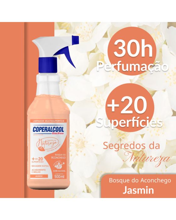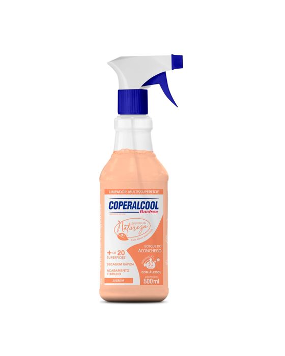 Características:O equilíbrio perfeito entre limpeza e bem-estar. O Limpador Multissuperfície Segredos da Natureza é o primeiro produto à base de álcool no mercado que foi desenvolvido para ser aplicado em + de 20 superfícies.A fragrância de Jasmim cria um ambiente aconchegante.Detalhes:- Marca: Coperalcool;- Modelo: Backfree Segredos da Natureza Bosque do Aconchego;- Linha: Limpadores;- Tipo: Spray;- Fragrância: Jasmin;- Volume: 500ml;- Cor: Laranja;- Contém: 1 unidade do produto;- 5 em 1: Limpa, Perfuma, Dá Brilho, Desengordura e Tira Limo;- Mais de 20 superfícies podem ser limpas;- Até 30 horas de perfumação;- Com álcool;- Com óleos essenciais;- Secagem rápida;- Acabamento e brilho.Indústria Brasileira. | Validade: 24 meses após a data de fabricação impressa na embalagem.Ideal para:- Ideal para usar em Azulejo, Alumínio, Cerâmica, Porcelanato, Vidro, Laminado Vinílico, Madeira, Mármore, Fórmica, Tecido, Metal, Plástico, Fogão, Geladeira, Micro-ondas, Forno Elétrico, Eletrodomésticos, Superfícies enceradas e laqueadas e espelhos.Modo de usar:- Para limpeza mais profunda: Aplique o produto puro na superfície a ser limpa e esfregue com um pano ou esponja, deixe agir por cerca de um minuto e remova a sujeira com um pano úmido ou enxágue, se necessário.- Para limpeza mais superficial ou de pisos e azulejos: Aplique o produto sobre a superfície a ser limpa e espalhe com um pano ou flanela, removendo a sujeira, em seguida para finalização e brilho, passe um pano seco , aplique novamente o produto e espalhe com um pano ou flanela.Recomendações:- Teste em uma pequena área não visível antes de usa-lo pela primeira vez;- Para limpeza de superfícies grandes, aplique por partes e realize o enxágue sempre que necessário.Conservação:- Conservar em local em local seguro, coberto, ventilado e ao abrigo do sol e do calor;- Não derramar sobre o fogo, manter afastado do fogo.Composição:- Água, Álcool Etílico, Tensoativo Aniônico, Tensoativo Catiônico, Emulsificante, Sequestrante, Conservante e Fragrância.Medidas:- Dimensões do produto: 7 x 9,5 x 24cm (CxLxA);- Peso: 500g.ATENÇÃO! MANTENHA FORA DO ALCANCE DAS CRIANÇAS E DOS ANIMAIS DOMÉSTICOS.* As especificações podem ser alteradas sem aviso prévio ** Imagem meramente ilustrativa.