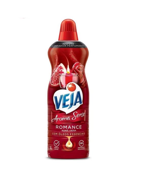 Caracteristicas:Veja Aroma Sense traz fragrâncias aromaterápicas que transformam o ambiente e seu estado de espírito. A versão Romance combina a limpeza de Veja com uma fragrância que estimula a harmonia e a vitalidade em sua casa.- Superfícies: superfícies laváveis de cozinhas, banheiros, principalmente pisos e azulejos.- Benefícios: limpeza eficaz e perfumação prolongada.- Fragrância: Romance- Conteúdo: 1 LitroCOMO USARUso diário: dilua 3 tampas (90 ml) do produto em 3 litros de água. Umedeça um pano e passe sobre as superfícies a serem limpas. Para perfumação mais intensa: utilizar o produto puro em um pano úmido. É recomendado para superfícies laváveis de cozinhas, banheiros, principalmente pisos e azulejos. Antes do uso, teste-o em uma pequena área.* As especificações podem ser alteradas sem aviso prévio ** Imagem meramente ilustrativa