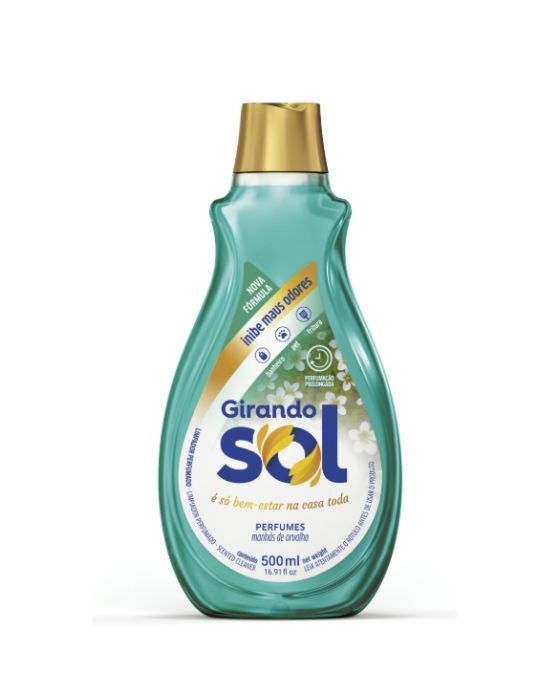 O LIMPADOR PERFUMADO GIRANDO SOL combina eficientes agentes limpadores com fragrâncias que deixam sua casa agradavelmente perfumada e com uma gostosa sensação de limpeza e bem estar por muito mais tempo. Ideal para limpar as mais diversas superfícies laváveis, como em cozinhas, banheiros, pias, bancadas e principalmente pisos e azulejos. - Combina eficientes agentes de limpeza com agradáveis fragrâncias. - Perfuma a casa inteira. - Ideal para limpar as mais diversas superfícies laváveis. - É só aplicar, espalhar e pronto! - Embalagem com visual atraente e de fácil manuseio.Modo de Usar - Aplique o Limpador Perfumado Girando Sol diretamente sobre as superfícies a serem limpas e espalhe com um pano limpo. - Se desejar, dilua o produto em água. - Não é necessário enxaguar.Cuidados - Manter fora do alcance de crianças e animais domésticos. - Evite o contato prolongado do produto com a pele. - Não ingerir. - Conserve a embalagem bem fechada após o uso. - Não reutilize a embalagem vazia para outros fins. - Em caso de contato com os olhos, lavar imediatamente com água corrente em abundância por pelo menos 15 minutos. Se houver sinais de irritação, chame socorro médico. - Em caso de ingestão, não provoque vômito e consulte imediatamente o Centro de Intoxicações ou o seu médico, levando o rótulo do produto. - Não dê nada por via oral à uma pessoa inconsciente.Composição Química - Composição: Tensoativo Catiônico, Tensoativo Não Iônico, Sequestrante, Conservante, Corante, Fragrância e Àgua. - Componente Ativo: Amina Quaternária de Coco Etoxilada C9 - 11 e Álcool Etoxilado.