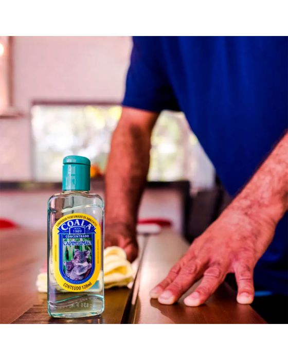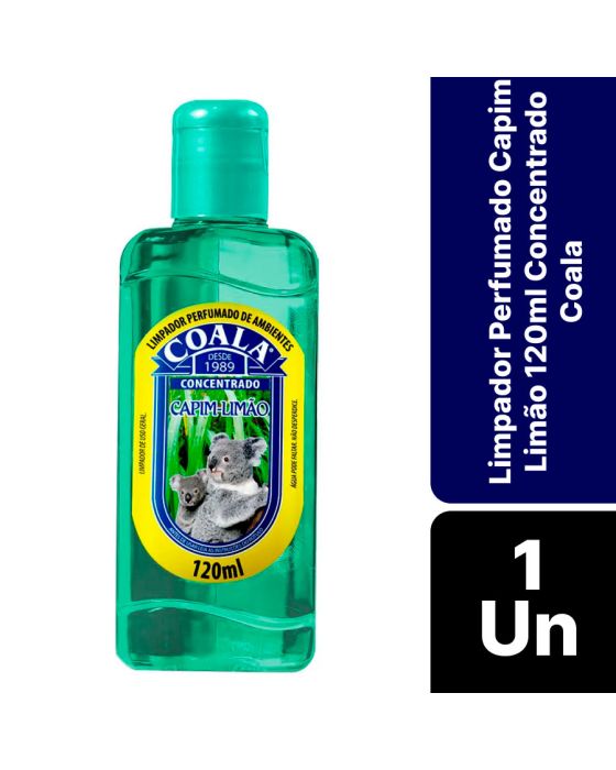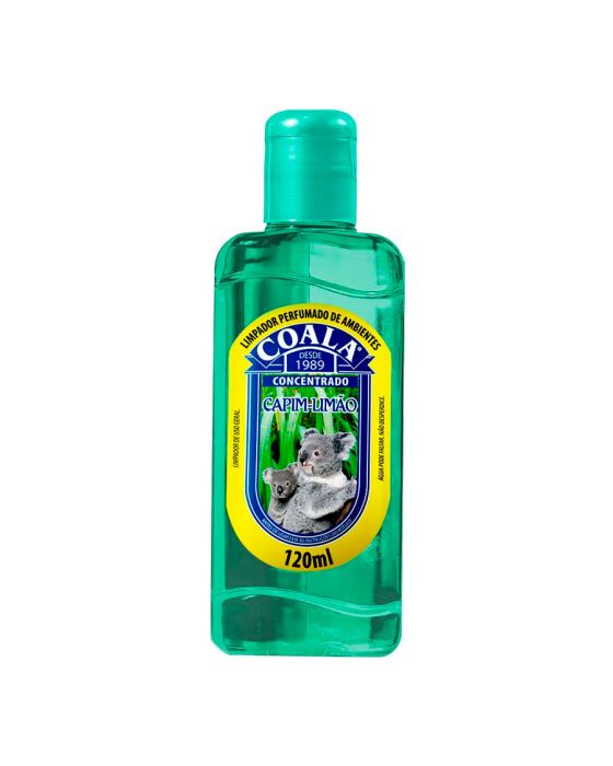 Características:Com Coala Essências Limpador Perfumado de Ambientes Capim Limão, seu ambiente vai ficar limpo e com um aroma incrível!Detalhes:- Marca: Coala.- Modelo: Limpador Perfumado;- Linha: Limpadores;- Tipo: Uso geral;- Fragrância: Capim Limão;- Volume/Peso: 120ml / 200g;- Contém: 1 unidade do produto;- Rendimento: 8 gotas rende 1 litro;- Garante a sensação prolongada de limpeza e bem-estar;- Tem perfume duradouro;- Fragrância agradável.Indústria Brasileira. | Validade: 24 meses após a data de fabricação impressa na embalagem.Onde usar:- Pode ser usado em ambientes como quartos, salas de estar/ jantar, cozinhas, banheiros, lavabos, escritórios, salas de reunião entre outras.Modo de usar:- Diluir 8 gotas da Essência Limpadora concentrada em 1 litro de água e com o pano úmido e passar sobre a superfície desejada.Precauções:- Testar o produto em uma pequena área antes do uso, para evitar possíveis manchas.- Manter o produto em sua embalagem original, sempre fechada;- Não reutilize a embalagem.Conservação:- Guardar sob abrigo da luz do sol, pois o calor excessivo pode danificar o produto e sua eficácia.Composição:- Nonil fenol etoxilado 9,5 EO, solvente, fragrância, corante, sequestrante e veículo.Medidas:- Dimensões do produto: 5,5 x 2,7 x 15,2cm (CxLxA);- Peso: 200g.ATENÇÃO! MANTENHA O PRODUTO FORA DO ALCANCE DE CRIANÇAS E ANIMAIS DE ESTIMAÇÃO.* As especificações podem ser alteradas sem aviso prévio ** Imagem meramente ilustrativa