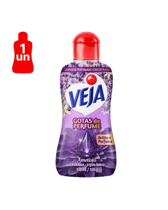 Características:- Limpador perfumado concentrado em gel com alta intensidade de fragrância: O Limpador Perfumado Concentrado Ametista Veja é um limpador de uso geral com fórmula em gel de alta concentração, desenvolvido para limpeza de superfícies laváveis com forte ação de perfumação e acabamento com brilho. Indicado para manutenção diária de ambientes internos, combina eficiência de limpeza com aromatização prolongada.- Fórmula concentrada com aplicação pura ou diluída: Possui formulação concentrada que permite diferentes modos de uso, podendo ser aplicado puro para máxima intensidade de perfume e brilho ou diluído para limpeza rotineira com melhor rendimento. A textura em gel facilita a dosagem e o controle durante a aplicação.- Alta perfumação e efeito de brilho: Conta com tecnologia de fragrância intensificada, oferecendo até 20x mais perfume e deixando o ambiente perfumado por mais tempo. O agente formador de filme contribui para melhor acabamento e realce de brilho nas superfícies compatíveis.- Fragrância Ametista com notas de lavanda e violeta: A fragrância Ametista (Lavanda Equilíbrio) combina notas frescas de lavanda do campo com a sofisticação da violeta, entregando perfil aromático equilibrado, suave e refrescante para o ambiente.- Composição técnica: Formulado com álcool laurílico 10 EO, agente formador de filme, emulsificante, neutralizante, espessante, conservante, fragrância, corantes e água, assegurando estabilidade, desempenho de limpeza e perfumação.- Sobre a marca: Veja é uma marca consolidada no segmento de limpeza doméstica, reconhecida por fórmulas de alta performance, inovação em fragrâncias e soluções práticas para cuidados diários com diferentes superfícies.- Dimensões do produto: Comprimento: 6cm;Largura: 3cm;Altura: 14,5cm;Peso: 100g.Para consultar a FDS (Ficha com Dados de Segurança), acesse (copiar e colar no navegador):https://preview--consultafdscontabilista.base44.app/share?product_id=104482IMPORTANTE! CONSERVAR FORA DO ALCANCE DAS CRIANÇAS E DOS ANIMAIS DOMÉSTICOS.* As especificações podem ser alteradas sem aviso prévio ** Imagem meramente ilustrativa.