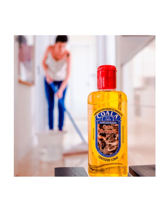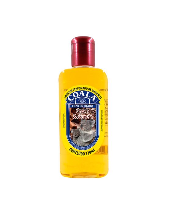 Caracteristicas:Com Coala Essências Limpador Perfumado de Ambientes Cravo e Canela, seu ambiente vai ficar limpo e com um aroma incrível!Detalhes:- Marca: Coala.- Modelo: Limpador Perfumado.- Linha: Limpadores.- Fragrância: Cravo e Canela.- Quantidade: 120ml.- Contém:- Medidas da embalagem: 6,6 × 4 × 16cm.- Peso: 200g- Rendimento: 8 gotas rende 1 litro.- Garante a sensação prolongada de limpeza e bem-estar.- Tem perfume duradouro.- Fragrância agradável.- Validade: 24 meses após a data de fabricação.Onde usar:- Pode ser usado em ambientes como quartos, salas de estar/ jantar, cozinhas, banheiros, lavabos, escritórios, salas de reunião entre outras.Modo de usar:- Diluir 8 gotas da Essência Limpadora concentrada em 1 litro de água e com o pano úmido e passar sobre a superfície desejada.Precauções: - Testar o produto em uma pequena área antes do uso, para evitar possíveis manchas. - Manter o produto em sua embalagem original, sempre fechada. Conservação: - Guardar sob abrigo da luz do sol, pois o calor excessivo pode danificar o produto e sua eficácia. Composição:- Nonil fenol etoxilado 9,5 MO, solvente, estabilizante, fragrância, corante, conservante e água.ATENÇÃO! MANTENHA O PRODUTO FORA DO ALCANCE DE CRIANÇAS E ANIMAIS DE ESTIMAÇÃO.* As especificações podem ser alteradas sem aviso prévio ** Imagem meramente ilustrativa