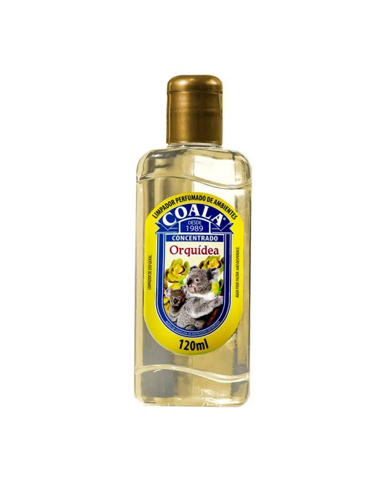 Caracteristicas:Com Coala Essências Limpador Perfumado de Ambientes Orquídea, seu ambiente vai ficar limpo e com um aroma incrível.Detalhes:- Marca: Coala;- Modelo: Limpador Perfumado;- Linha: Limpadores;- Fragrância: Orquídea;- Volume/Peso: 120ml / 200g;- Contém: 1 unidade do produto;- Medidas da embalagem: 6,6 x 4 x 16cm;- Rendimento: 8 gotas rende 1 litro;- Garante a sensação prolongada de limpeza e bem-estar;- Tem perfume duradouro;- Fragrância agradável.Validade: 24 meses após a data de fabricação.Onde usar:- Pode ser usado em ambientes como quartos, salas de estar/ jantar, cozinhas, banheiros, lavabos, escritórios, salas de reunião entre outras.Modo de usar:- Diluir 8 gotas da Essência Limpadora concentrada em 1 litro de água e com o pano úmido e passar sobre a superfície desejada.Precauções:- Testar o produto em uma pequena área antes do uso, para evitar possíveis manchas;- Manter o produto em sua embalagem original, sempre fechada;- Além disso, é importante manter fora do alcance de crianças e animais de estimação.Conservação:- Guardar sob abrigo da luz do sol, pois o calor excessivo pode danificar o produto e sua eficácia.Composição:- Nonil fenol etoxilado 9,5 MO, solvente, estabilizante, fragrância, corante, conservante e água.ATENÇÃO! MANTENHA O PRODUTO FORA DO ALCANCE DE CRIANÇAS E ANIMAIS DE ESTIMAÇÃO.* As especificações podem ser alteradas sem aviso prévio ** Imagem meramente ilustrativa.
