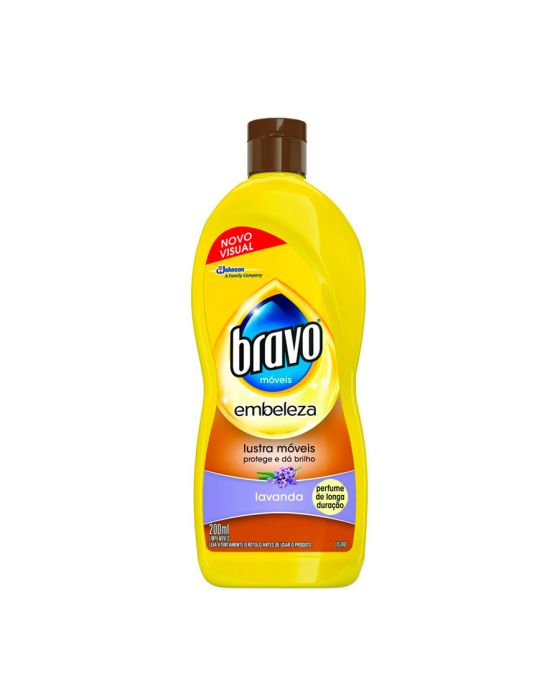 Características:O lustra-móveis Bravo Brilho Prático confere perfume e brilho aos móveis e eletrônicos da sua casa. Ele também pode ser usado para a limpeza e conservação de superfícies envernizadas, laqueadas e de mármore, couros, azulejos e esmaltados como: fogões, geladeiras, máquinas de lavar etc.Detalhes:- Marca: Bravo.- Linha: Lustra Móvel.- Fragrância: Lavanda.- Volume/Peso: 200ml.- Validade: 2 naos após a data de fabricação.- Contém: 1 unidade do produto.- Limpa, embeleza e revitaliza.- Lustra-móveis.- Confere brilho.- Confere perfume.Onde usar:- pode ser usado para a limpeza e conservação de superfícies envernizadas, laqueadas e de mármore, couros, azulejos e esmaltados como: fogões, geladeiras, máquinas de lavar etc.Modo de usar:- Agite antes de usar.- Aplique com um pano seco e limpo e em seguida lustre para realçar o brilho.- Atenção não deve ser usado em pisos e escadas.Conservação:- Mantenha longe do fogo e superfícies aquecidas.- Mantenha o recipiente hermeticamente fechado em lugar ventilado.Composição:- Veículo, Cera microcristalina, Óleo parafínico, Silicone, Alcalinizantes, Espessante, Éster de Sorbitan, Éster de Sorbitan Etoxilado, Preservante, Solvente Alifático e Fragrância.Medidas:- 7,1 x 3 x 18,7cm.- Peso: 215g.Para consultar a FDS (Ficha com Dados de Segurança), acesse (copiar e colar no navegador):https://preview--consultafdscontabilista.base44.app/share?product_id=76666ATENÇÃO! NÃO APLICAR O PRODUTO EM PISOS. CONSERVE FORA DO ALCANCE DAS CRIANÇAS E DOS ANIMAIS DOMÉSTICOS.* As especificações podem ser alteradas sem aviso prévio ** Imagem meramente ilustrativa.