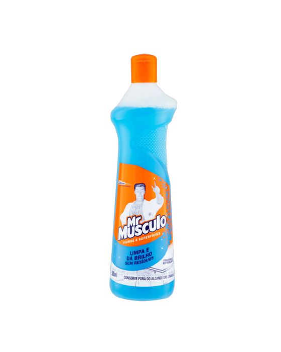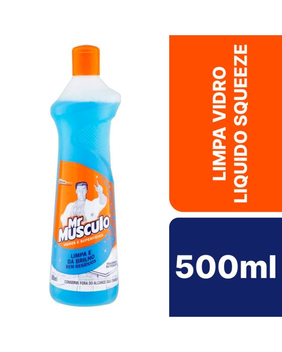 Características:Com o Mr. Músculo, é ideal para garantir uma limpeza satisfatória desde o banheiro até a cozinha, isso porque remove a sujeira e lustra as superfícies sem deixar resíduos para que você limpe a sua casa sem esforços e consiga aproveitar para descasar em um ambiente limpo com toda a sua família!Detalhes:- Marca: Mr. Musculo;- Modelo: Limpa Vidros Squeeze;- Linha: Limpa Vidros;- Volume: 500ml;- Estado; Líquido;- Contém: 1 unidade do produto de 500ml;- Mr músculo limpador de vidros e superfícies remove a sujeira e lustra superfícies sem deixar resíduos;- Limpeza superior sem resíduos.Modo de usar:- Segure a embalagem na posição vertical, fazendo pressão direcionando o jato sobre a superfície a ser limpa. - Para melhores resultados borrife e, em seguida, passe um pano seco ou papel limpo para dar brilho.Conservação:- Mantenha o produto na embalagem original.Recomendações:- Não indicado o uso em madeira, superfícies envernizadas, pintadas, laqueadas ou porosas;- Teste o produto em uma pequena área antes de usá-lo;- Retire os eletrodomésticos da tomada antes de aplicar o produto.Medidas:- Dimensões do produto: 24 x 6,8 x 6,8cm (AxLxC);- Peso: 504g.MANTENHA FORA DO ALCANCE DE CRIANÇAS E ANIMAIS DOMÉSTICOS. Cuidado! Perigoso se ingerido. Não ingerir. Evite inalação ou aspiração, contato com os olhos ou com a pele.* As especificações podem ser alteradas sem aviso prévio ** Imagem meramente ilustrativa.