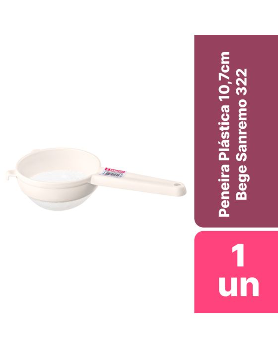 Características:Peneira plástica com design clássico e clean, e com alta resistência e durabilidade, além de ser um produto leve. Ideal para receitas de doces e salgados ou então para coar sucos e chás. Não pode faltar na cozinha ou refeitório.Detalhes:- Marca: Sanremo;- Modelo: Peneira Plástica;- Referência: 322;- Linha: Peneiras;- Cor: Bege;- Tamanho: 10,7cm;- Contém: 1 unidade do produto;- Produto Atóxico, livre de BPA;- Pega anatômica e base firme;- Design clássico.Ideal para:- Ideal para peneiras alimentos secos ou para coar coar líquidos, como sucos.Composição: - Fabricado em Plástico.Medidas:- Dimensões do produto: 10,7 x 10,7 x 11,8cm (CxLxA);- Peso: 085g.* As especificações podem ser alteradas sem aviso prévio ** Imagem meramente ilustrativa.