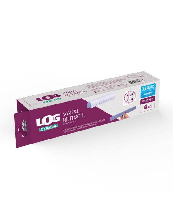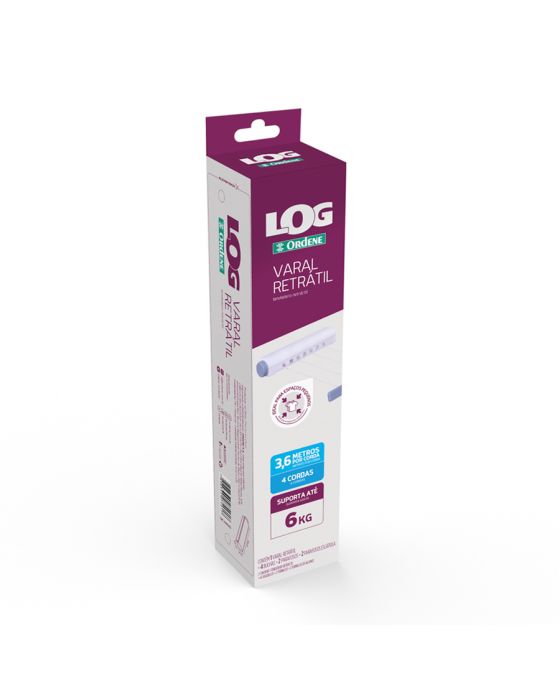 Características:O Varal Retrátil de Plástico Log Ordene é ideal para pequenos espaços. Acompanha buchas, parafusos e escápula para instalação, além de molde para instalação em sua embalagem.Detalhes:- Marca: Ordene;- Modelo: Log;- Referência: OR16370;- Linha: Varais;- Tipo: Retrátil;- Cor: Branco/Roxo;- Capacidade: Suporta até 6kg;- Cordas: possui 4 cordas com 3,6m cada;- Contém: 1 unidade do produto;- Acompanha: 4 parafusos, 4 buchas e 4 parafusos escápula;- Ideal para pequenos espaços;- Possui molde de instalação na embalagem.Indústria Brasileira | Validade Indeterminada.Onde usar:- Pode ser utilizado na cozinha, lavanderia, garagem e área de serviço.Ideal para:- Ideal para peças de roupas leves.Instalação:- Utilize o molde desenhado na embalagem para furar a parede e fixar o Log Varal Retrátil. Na parede em frente do varal, fixe os parafusos escápula, eles irão segurar a base com os cordões;- Após fixar o Log Varal Retrátil, para utilizar basta puxar a base, esticando os corões e encaixá-la nos parafusos escápula fixados na parede em frente ao varal;- Atenção: para maior segurança, sempre verifique se a trava para cordas está encaixada, principalmente se as cordas não estiverem esticadas.Ferramentas necessárias:- Furadeira e broca 6mm;- Chave de fenda;- Lápis;- Nível;- Molde de furação.Composição:- Fabricado em Poliestireno e Poliéster.Medidas:- Dimensões do produto: 29,5 x 6,3 x 5,9cm (CxLxA).* As especificações podem ser alteradas sem aviso prévio ** Imagem meramente ilustrativa.