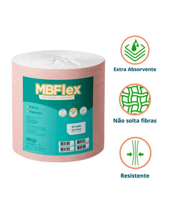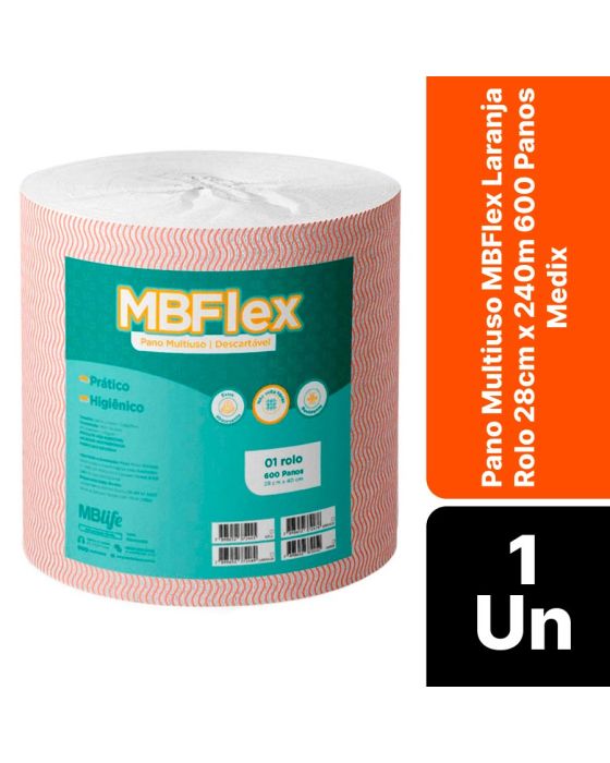 Pano Multiuso Mbflex Laranja Rolo 28cm X 240m C/600 Panos Medix