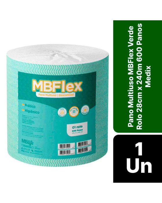 Características:O Pano Multiuso MBFlex Verde Medix promove uma limpeza prática, rápida e eficaz e ideal para a limpeza e secagem de superfícies e utensílios. Desenvolvido para garantir resistência e delicado com a superfície, fazendo com que o pano multiuso limpa, dá brilho, não solta fiapos e higiênicos, sem reter odores e fácil de destacar.Detalhes:- Marca: Medix;- Modelo: MBFlex;- Referência: 8541;- Linha: Panos Descartável Multiuso; - Cor: Verde;- Tamanho do pano: 28 x 40cm (LxC);- Gramatura: 35g/m2;- Quantidade de panos: 600 panos;- Contém: 1 unidade do produto com 600 panos;- Prático e Higiênico;- Extra Absorvente;- Não solta fibras;- Fácil de destacar;- Resistente;- Produto não perecível.Fabricado na China. | Validade: Indeterminada.Ideal para:- Ideal para a limpeza de diversas superfícies como utensílios domésticos e limpeza de superfícies em gerais.Modo de uso:- Abrir o rolo;- Destacar um pano;- Proceder com a limpeza do local ou utensílio;- Descartar após o uso ou higienizar para reutilizar.Composição:- 49% Celulose e 51% Poliéster.Medidas:- Dimensões da bobina: 21,7 x 21,7 x 27,5cm (CxLxA);- Peso: 1,6kg.* As especificações podem ser alteradas sem aviso prévio ** Imagem meramente ilustrativa.