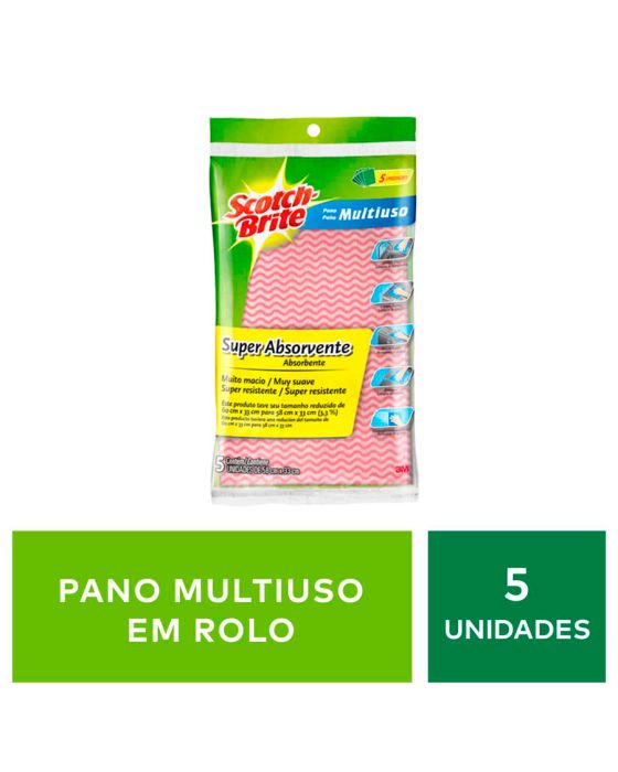 Características:O produto que você confia há anos. O Pano Multiuso Scotch-Brite é o famoso pano de furinhos, utilizado para limpeza de toda a casa. É super absorvente e seca rapidamente, realizando limpezas mais rápidas e fáceis.Leve e prático, ele absorve bem os líquidos com fácil enxágue, sem reter odores. O Pano Multiuso Scotch-Brite é flexível e macio, e não mancha ou desbota as superfícies. É super absorvente e seca rapidamente, realizando limpezas mais rápidas e fáceis. Este pano vai fazer com que você abandone o papel toalha e panos de algodão velhos. Cada cozinha deve ter um Pano Multiuso Scotch-Brite!Detalhes:- Marca: Scotch-Brite®;- Fabricante: 3M™;- Modelo: Pano Multiuso Scotch-Brite™;- Referência: HB004470181;- Linha: Pano Multiuso;- Cor: Rosa;- Quantidade: 5 panos multiuso;- Contém: 1 embalagem com 5 unidades;- É lavável à máquina- Mais durável do que papel toalha- É super absorvente e seca rapidamente, realizando limpezas mais rápidas e fáceis- Leve e prático, ele absorve bem os líquidos com fácil enxágue, sem reter odores- Indicado para limpeza de toda a casa em suas diversas aplicaçõesValidade: 2 anos.Aplicação:- É indicado para limpeza de toda a casa em suas diversas aplicações, como limpeza, polimento e remoção de poeira em cozinhas e banheiros.Medidas:- Dimensões: 58 x 33cm (AxL).* As especificações podem ser alteradas sem aviso prévio ** Imagem meramente ilustrativa.