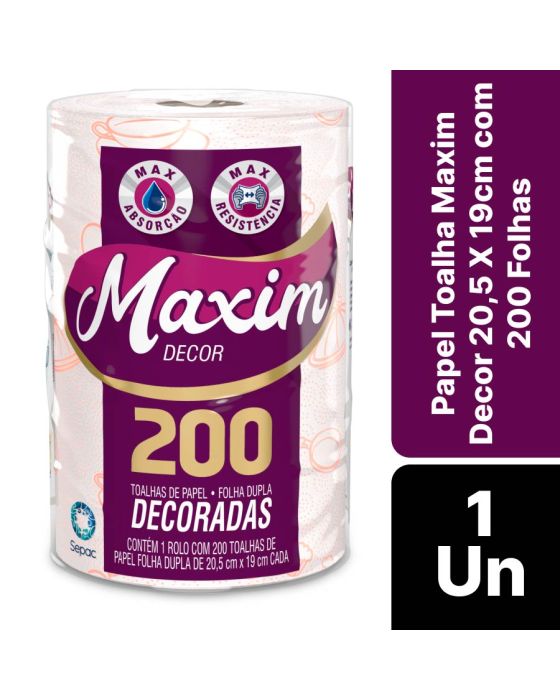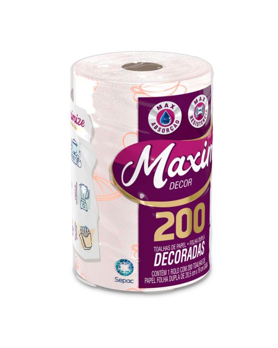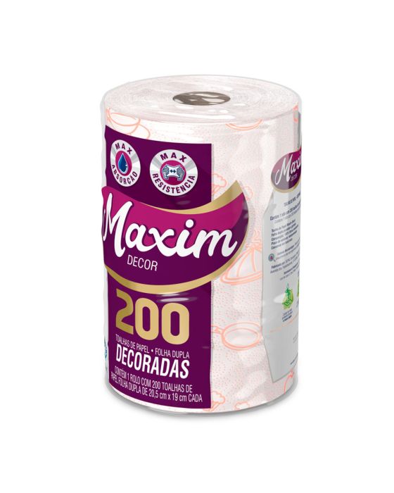 Características:As toalhas de papel Maxim Decor complementam o seu ambiente, pois têm gofrado diferenciado para agregar mais inovação. Além da qualidade do produto que você já conhece.Detalhes:- Marca: Maxim;- Fabricante: Sepac;- Modelo: Decor;- Linha: Papeis toalha;- Tipo: Rolo;- Folhas: Dupla;- Cor: Branco com gofrado em laranja- Tamanho: 20,5 x 19cm cada folha;- Quantidade de folhas: 200 folhas;- Contém: 1 rolo com 200 folhas do produto;- Segurança para o manuseio de alimentos;- Máxima Absorção e resistência;- Folha dupla picotada e gofrada;- Folhas decoradas.Indústria Brasileira. | Validade: Indeterminada.Ideal para:- Ideal para limpar superfícies, secar líquidos, embalar alimentos como lanches, secar comidas gordurosas como batatas fritas e empanados e a limpeza de eletrodomésticos.Composição:- Fabricado com 100% fibras celulósicas.Medidas:- Dimensões da toalha (cada): 20,5 x 19cm;- Dimensões do rolo: 13,4 x 13,4 x 20,3cm (CxLxA);- Peso: 231g.* Possui controle biológico: Método que permite remoção, redução e inibição do crescimento de microrganismos patógenos ou que causam deterioração do produto.* As especificações podem ser alteradas sem aviso prévio ** Imagem meramente ilustrativa.