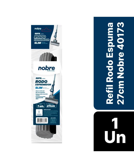 Características:- Desempenho superior na absorção e praticidade na limpeza: O Refil Rodo Espuma 27cm Nobre 40173 foi desenvolvido para oferecer máxima eficiência na remoção de líquidos e sujeiras em diversas superfícies. Sua espuma de PVA de alta absorção garante excelente desempenho na limpeza, permitindo secar pisos, paredes e janelas com rapidez e sem deixar marcas. Além disso, seu formato compacto proporciona maior controle e facilidade no manuseio durante o uso.- Construção durável e eficiente: Fabricado com materiais de qualidade, o refil combina a leveza e flexibilidade da espuma PVA com a resistência do suporte metálico, resultando em um produto robusto e de longa durabilidade. A espuma possui textura macia que não risca superfícies, tornando o refil ideal para pisos delicados, vidros e azulejos. Para garantir o melhor desempenho, recomenda-se hidratar a espuma antes do uso, mantendo-a sempre limpa e conservada.- Ideal para uso profissional e doméstico: Compatível com o Rodo Mágico com Cabo Slim 1,27m Regulável Nobre (SKU Contabilista: 103856), este refil é indicado para empresas de limpeza, condomínios, escolas, hospitais, escritórios e também para uso residencial. Sua eficiência na absorção e praticidade reduzem o tempo de trabalho e aumentam a produtividade, sendo ideal para ambientes que exigem agilidade e qualidade na manutenção.- Qualidade Nobre: A marca Nobre é reconhecida no mercado por desenvolver soluções práticas e robustas em higiene e limpeza, voltadas para ambientes corporativos, comerciais e industriais, sempre com foco em eficiência e durabilidade.- Dimensões da embalagem: Comprimento: 27cm; Largura: 6cm; Altura: 6cm; Peso: 130g.* As especificações podem ser alteradas sem aviso prévio ** Imagem meramente ilustrativa.